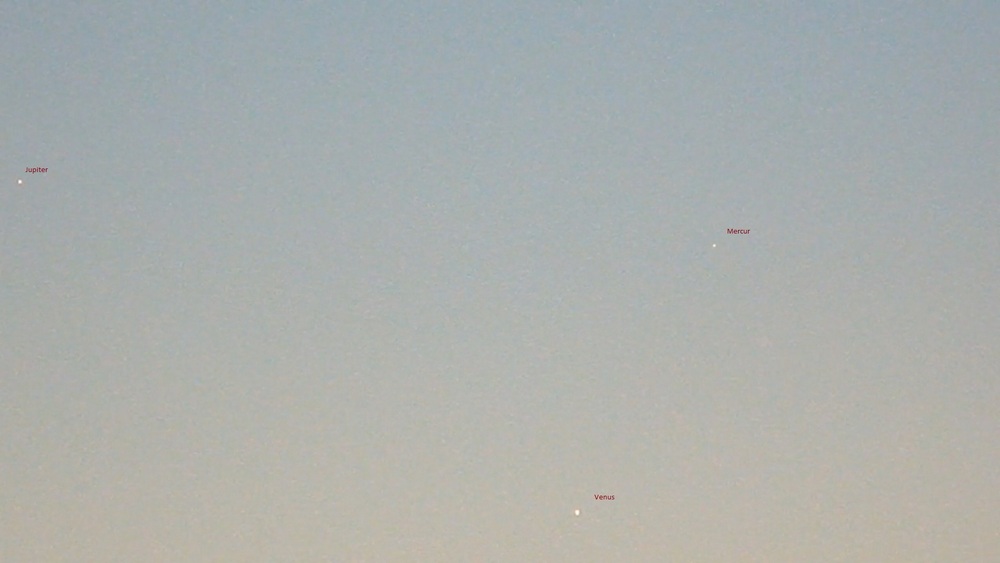 Azi era triunghi dreptunghic cu colt drept la Venus, cea mai stralucitoare, varf ascutit la Jupiter ceva mai putin luminos, iar cel mai greu vizibil Mercur. Distanta VJ cam de 2 ori cat distanta VM.