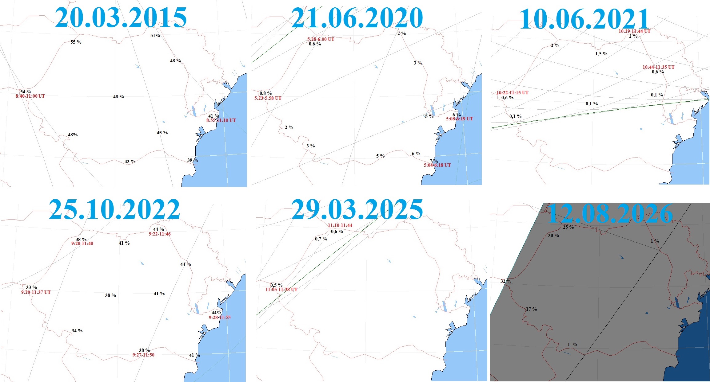 Este vorba despre toate eclipsele de Soare, partiale, totale, inelare, ce vor putea fi vizibile de pe teritoriul Romaniei, intre anii 2014-2081.