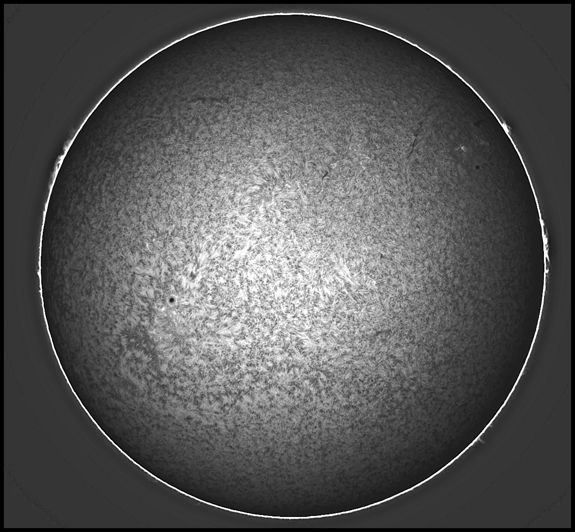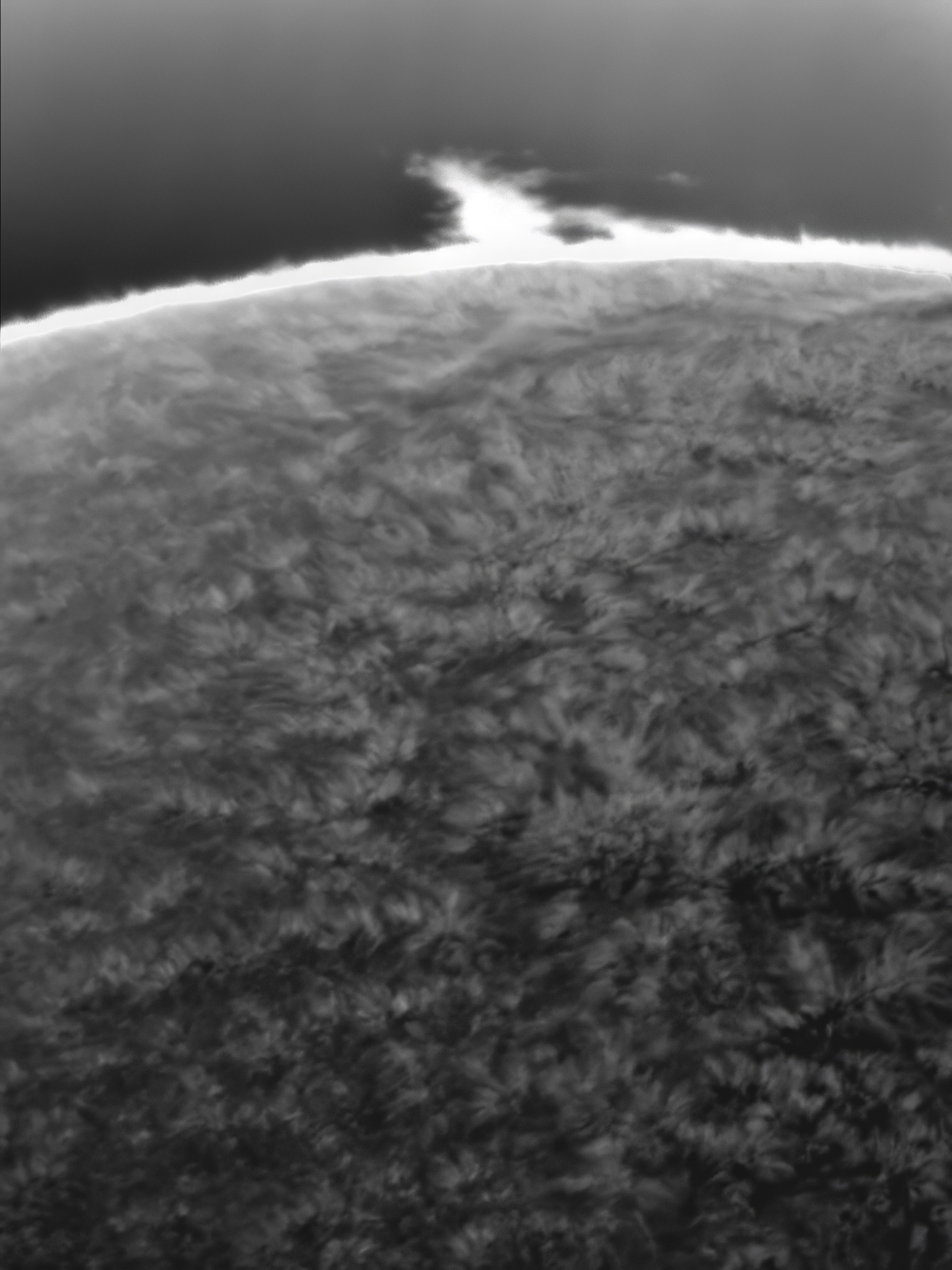 Am prelucrat in graba (pana mâine când voi avea mai mult timp), dintr-un singur cadru, imaginea cu protuberanta de azi aflata pe limbul estic.