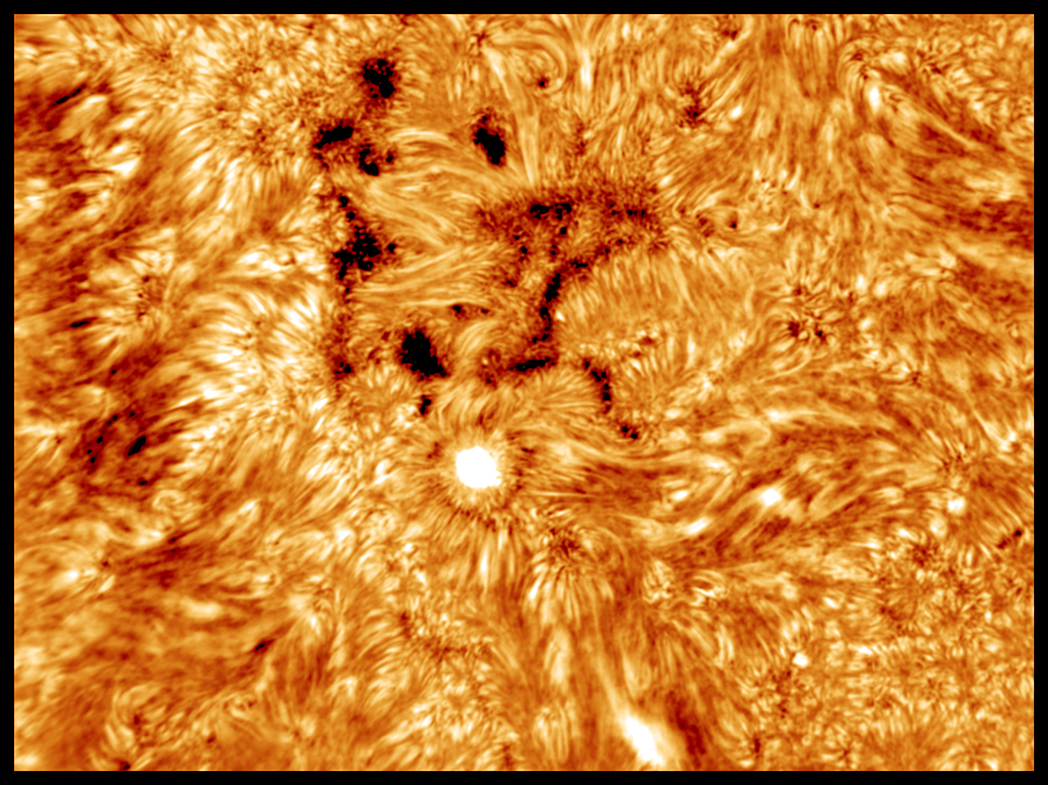 Pe discul solar apar multe regiuni luminoase, printre care si o eruptie in dreptul regiunii AR 4267 iar pe limb cateva protuberante printre care si una sau doua care leviteaza deasupra suprafetei solare.
