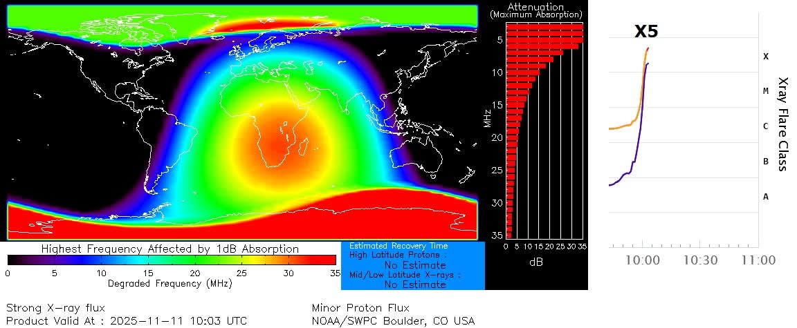 Faină teabă! Ieri dimineață aproape toate benzile de unde scurte au fost închise! Blackout, propagare prin reflexii ionosferice aproape nulă. A fost o erupție solară X1.79 cu ejecție de masă coronală tip halou. Au fost emisii radio de la Soare în mod continuu (Type IV) și cu drift lent și principală+armonică (Type II). Dacă auziți zgomot continuu sau burst (izbucniri scurte și dese - Type III) în locul convorbirilor obișnuite, să știți că acestea vin din coroana solară.