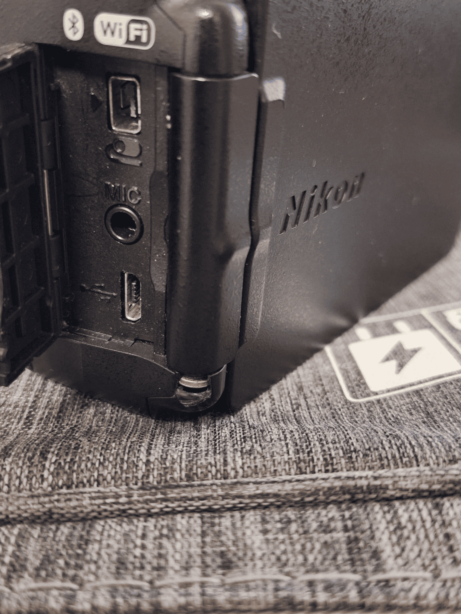 Are un mic defect, se poate vedea in poza, lipseste o bucatica de plastic, de aici si pretul de 1300. Cel mai probabil asa am primit camera, nu am scapat-o pe jos.