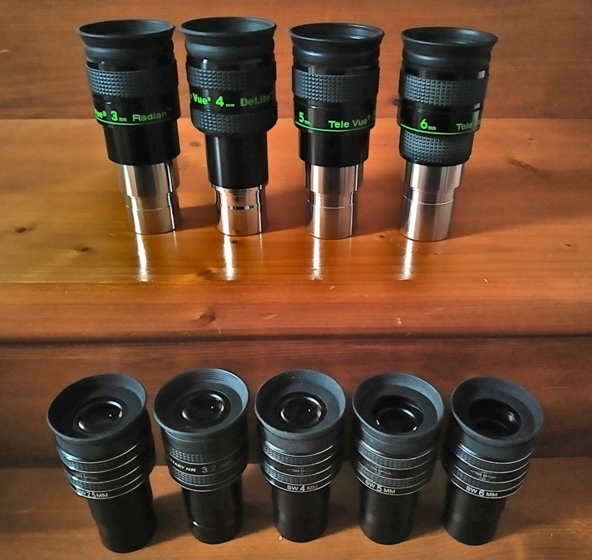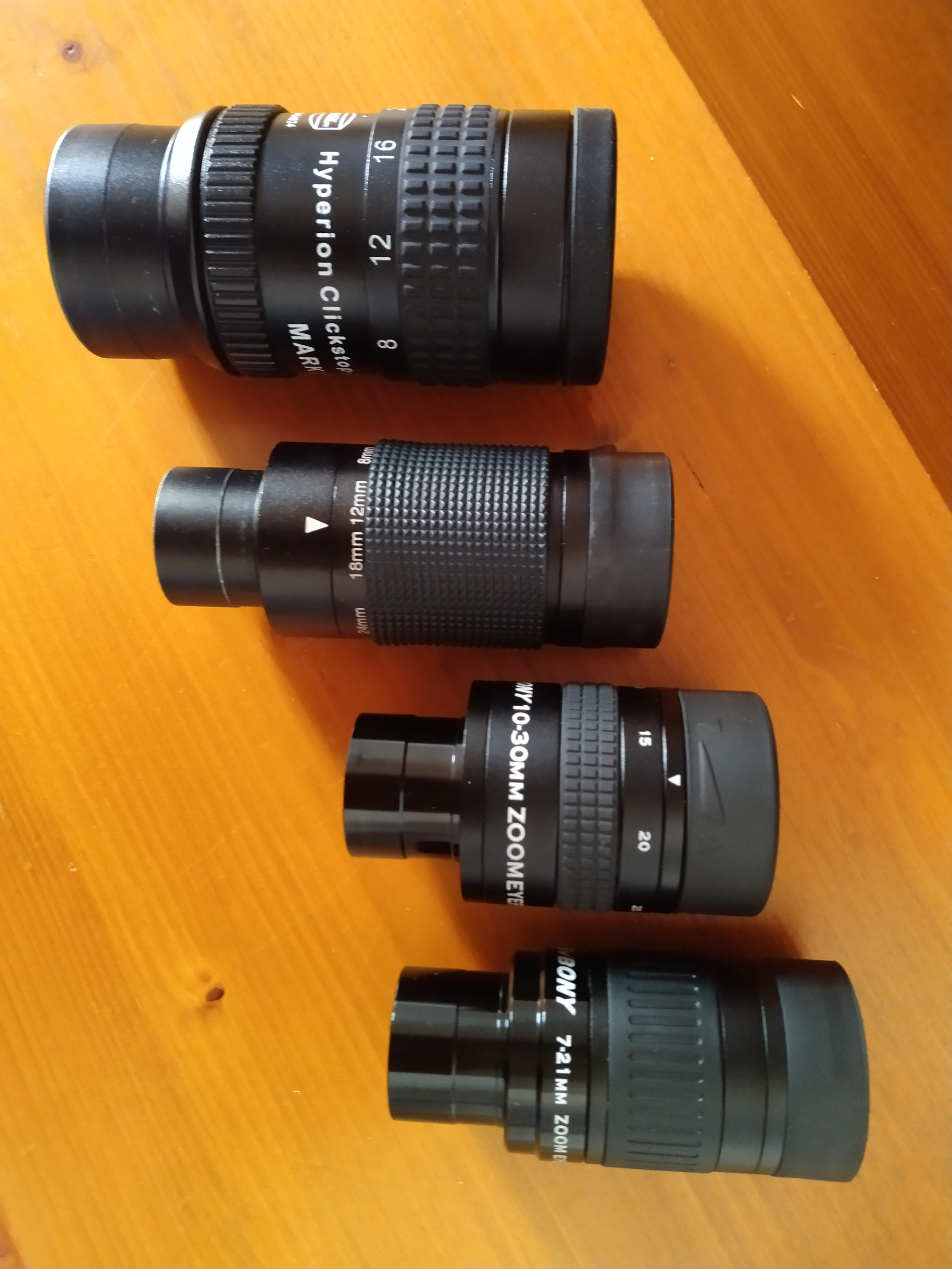 Ocularele ''de babe'', cu focale intre , sa zicem 20mm si 10mm, nu au cautare la mine. In locul lor, folosesc extensiv ocularele zoom, patru la numar.