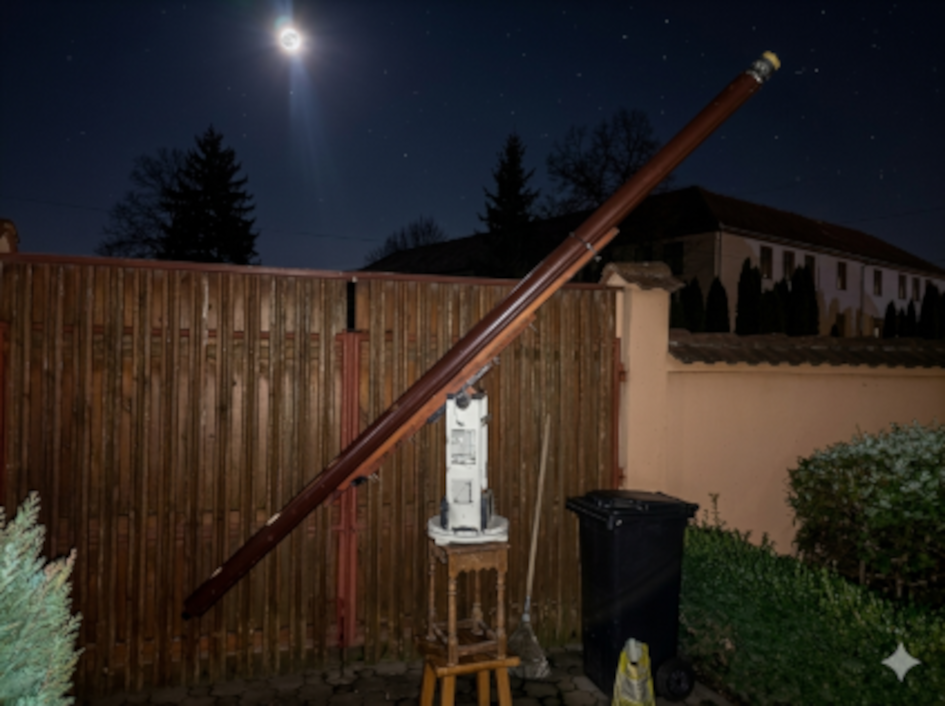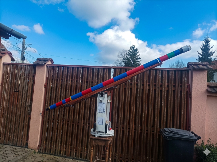Alternativa ar fi montarea completa in stil Dobson dar completata cu un suport mobil la un capat al tubului, ceea ce ar permite controlul direct din zona ocularului. Aceasta abordare reproduce, in esenta, solutiile istorice utilizate de Cassini si Huygens, care au rezolvat aceleasi probleme folosind mijloace simple precum franghii si catarge din lemn. Fizica a ramas aceeasi, iar ingeniozitatea constructiva continua sa fie cheia.