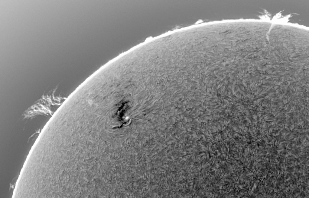Mai prezint doua imagini close-up mai detaliate, cu regiunea AR 4419, prelucrate dintr-o scanare facuta in mod Bin1 ,tot astazi, cu SHG 80mm si camera ASI178MM.