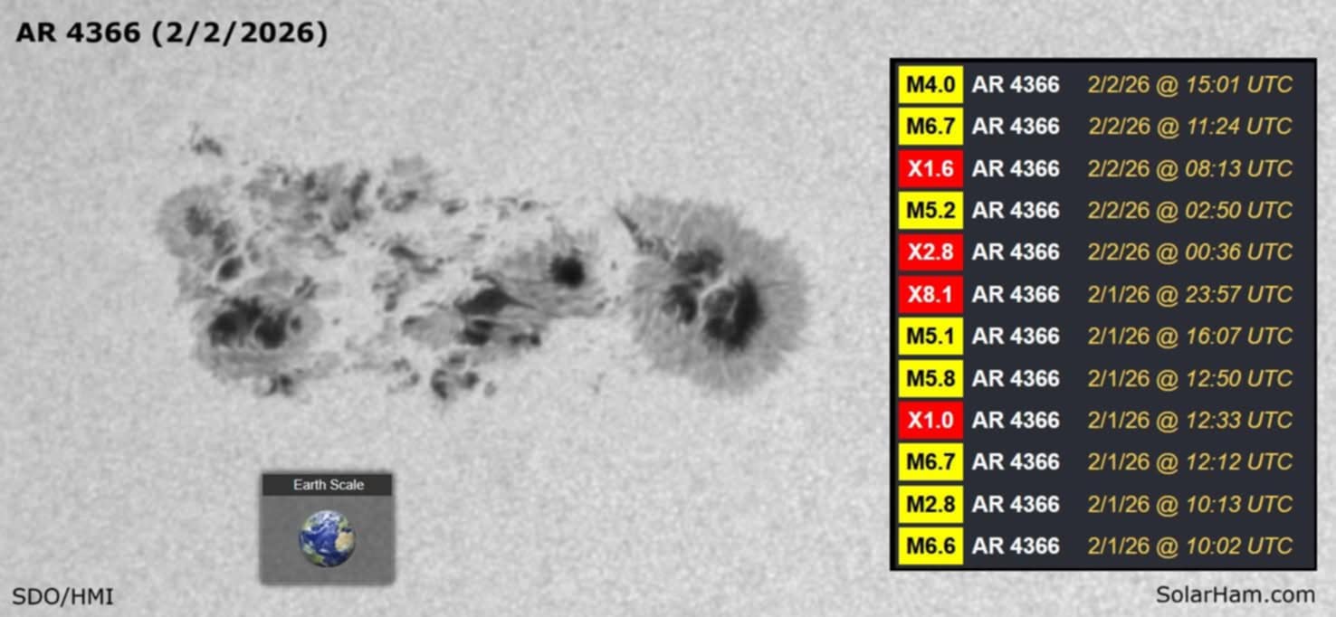 Regiunea solara este 4366 si a produs deja multiple eruptii. Chiar acum vreo 20 minute a avut un x1.51