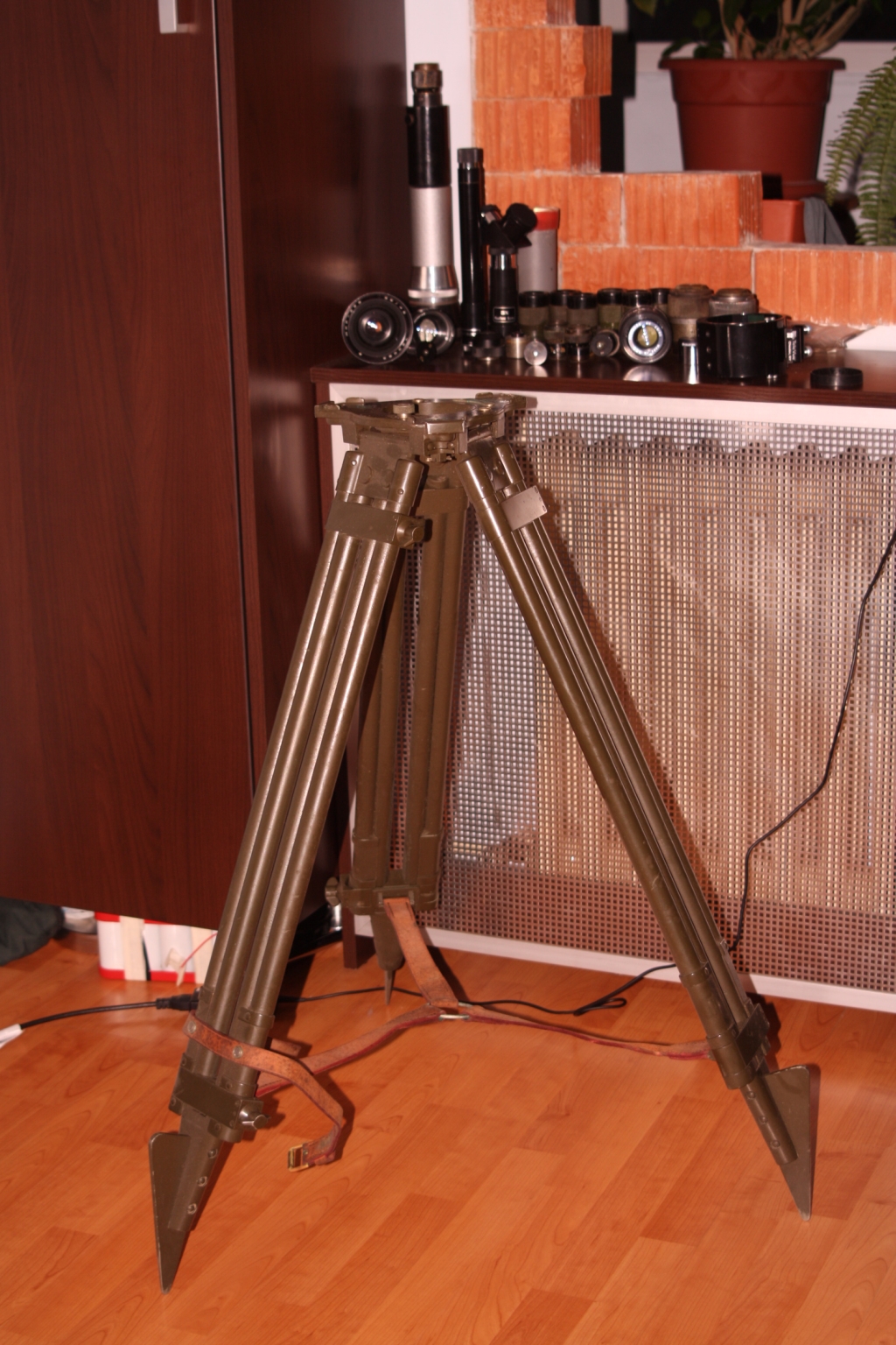 | Trepiedul este cu siguranta unul militar,poate de la un teodolit militar .Mie unul mi se pare suspect de ce nu vrea sa ne spuna de la ce provine ,asa ar lamuri multe aspecte.