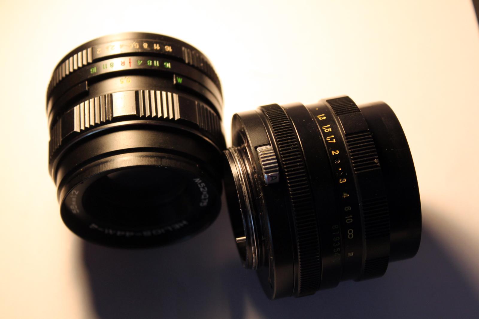 1. Un obiectiv foto Zenit Helios 44M-4 pe montura M42 si un obiectiv Helios 44M tot pe M42 cu selector Auto-Manual pentru diafragma. Ambele sunt in stare optica si de functionare foarte buna si au capacele de protectie din fata. La unul dintre ele nu am capacelul de protectie ce sta pe filetul monturii.