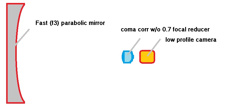 Pai am si eu niste oglinzi f5, f4, etc. Totusi nu-mi pot scoate din cap un astfel de sistem cu oglinda f3 si corector-reductor 0.73x, iese scurt si foarte rapid. Merge si la f4, cu reducator iese f3 dar contructia este mai lunga ca trebuie plasat si mai departe corectorul si camera.