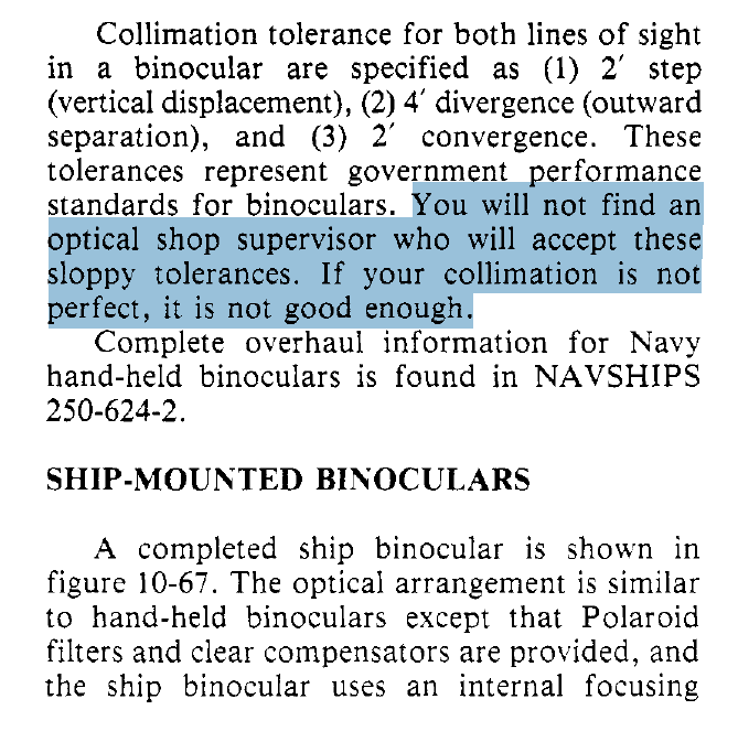 Era vorba de paralelismul axelor optice de la binoclu, iar cei de la US Navy o iau cel mai in serios, in tot ce am intalnit, de aia am dat pasajul. Mult mai serios decat aici. Si explica si cum, si de ce, interes zero barat pe acest forum.