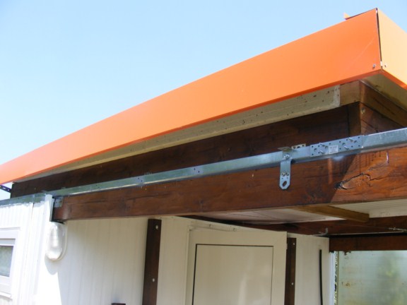 La acoperiș dacă înalți la un capăt plăcile pe un cadru trapezoidal cred că va fi OK și la ploaie și la zăpadă. Însă aș merge pe o înclinație mai mare pentru zăpadă, cu partea mai coborâtă spre exterior când se deschide să nu mai cadă apa sau zăpada înăuntru.