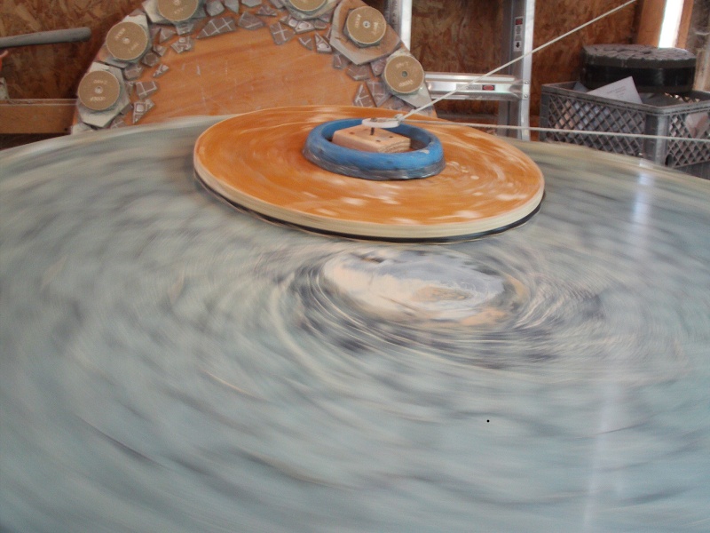 -oglinda de 1.52 metri dupa cateva ore de polisare.Oglinzile- element tind sa se poliseze mai repede pe margini,centrul fiecaruia ramanand ''in urma''.Se observa reflexia unui copac pe fata polisata.Dintr-un comentariu al lui Davis,care spune ca a obtinut o imagine grosiera a Soarelui cu un diametru de 36mm,am dedus ca oglinda va avea un focal de 4.2 metri,deci un raport F/D de F/2.8!!!Sageata este asadar de 33 mm.