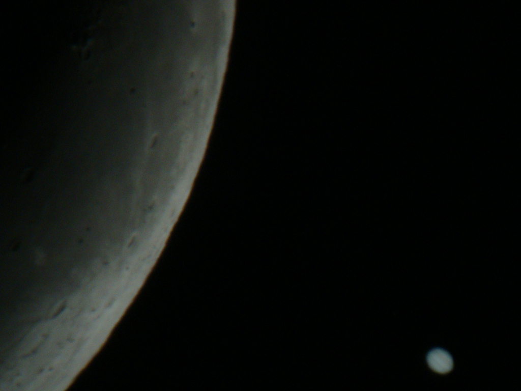 Din cauza unei posibile decolimari(inca nu sunt sigur daca am observat corect), imginea planetei Jupiter si chiar si a Selenei nu este extraordinar de clara, nu este o imagine, cum spune englezul, sharp, crispy, ci usor neclara. E posibil sa fie si din cauza ca evenimentul nu s-a petrecut prea mult deasupra orizontului desi imaginile pe care le-am vazut la "dcristi" ma face sa inteleg ca e posibil sa fie usor decolimat instrumentul.