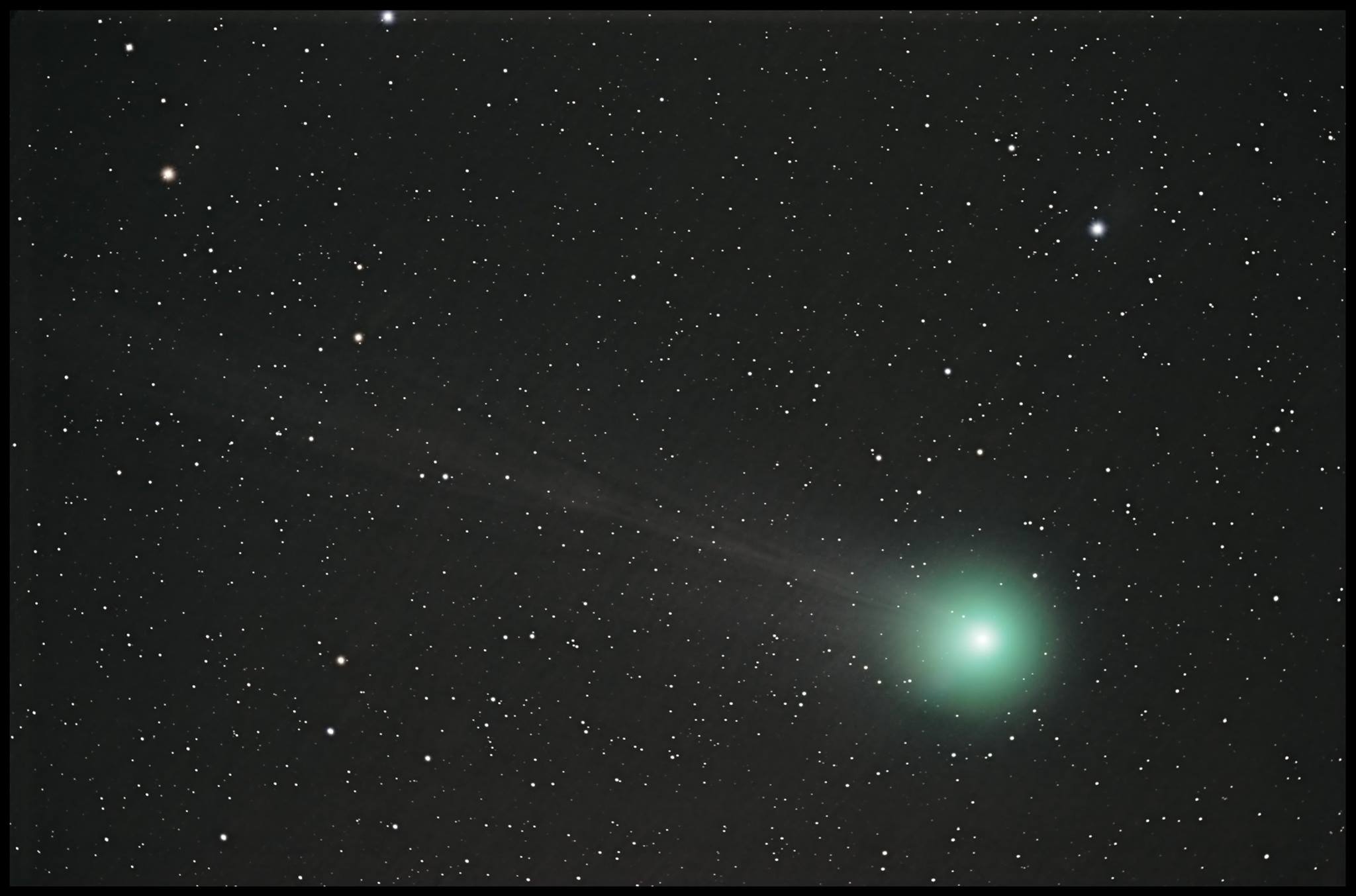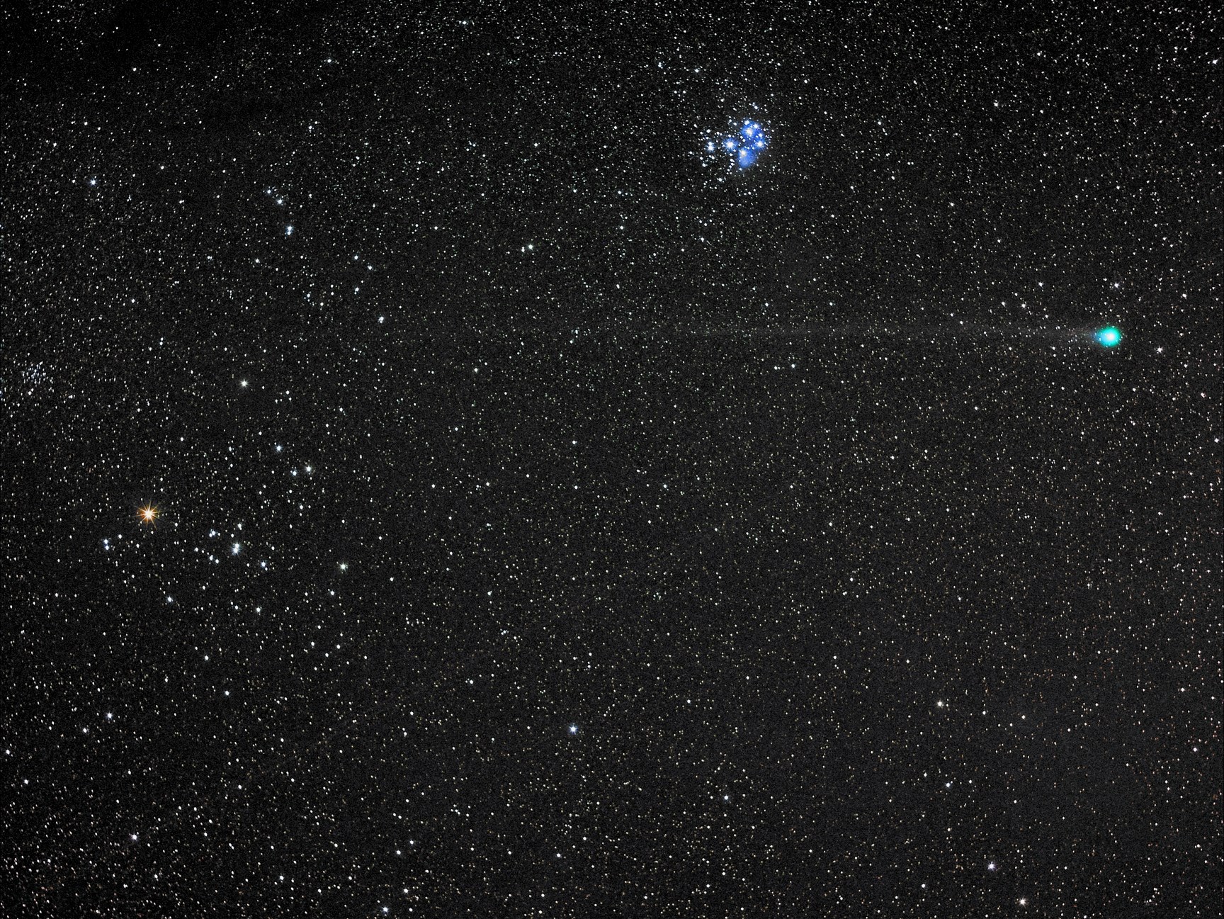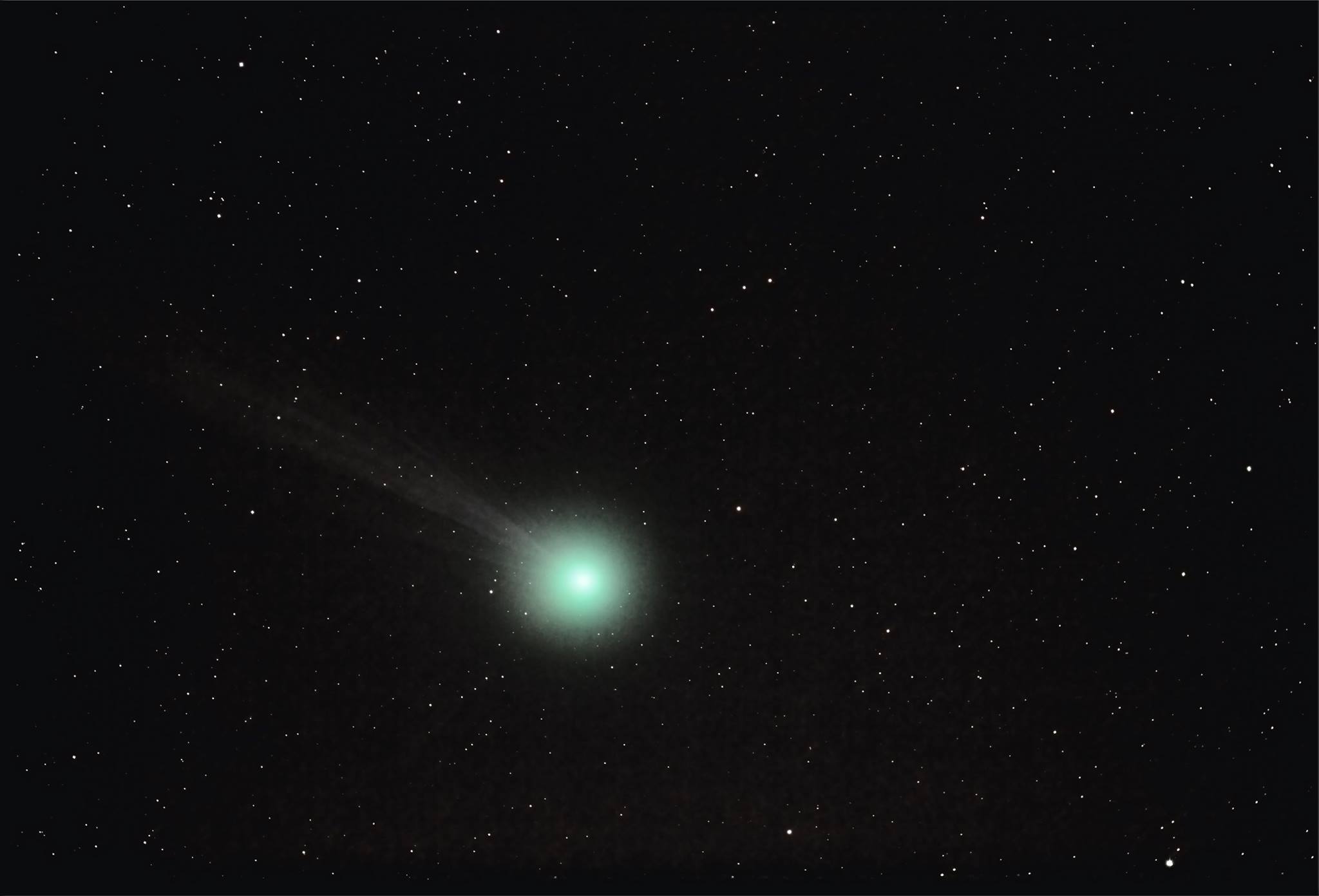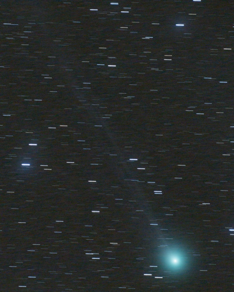 Am si eu o poza din 3 februarie facuta cu TSA-102S la f/8 cu 700D, 50X30s neghidat plus 50X30s dark-uri. E abia a doua poza facuta de mine vreodata la comete, acuma invat captura si procesare specifica deep-sky, nu dati cu (prea multe) pietre. Trebuie sa vad cum fac sa scap de zgomot, o sa incerc sa trag capturi de 1 minut poate iese mai bine (sper sa nu fie prea lungi pentru focala pe care o am si fara ghidaj). Din pacate nu pot schimba nimic legat de f/8.