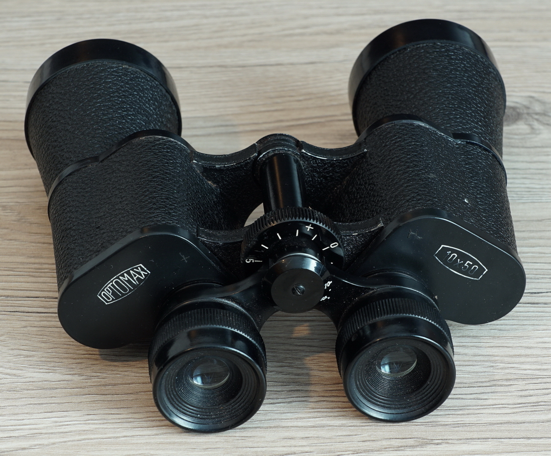 Binoclu Optomax 10x50, cu defect de colimare: dubleaza imaginea.