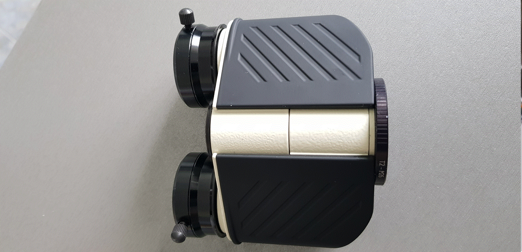Vand binoviewer Lacerta in garantie, achizitionat acum 3 luni, folosit de cateva ori, impecabil, fara urme de utilizare. Alaturi de binoviewer ofer gratuit si un adaptor ultrascurt, de la M26 (cap binoviewer) la T2. Cu ajutorul acestui adaptor, impreuna si cu schimbarea focuserului lunetei 120/600 achro, am reusit sa folosesc bino pe aceasta luneta RFT fara GPC