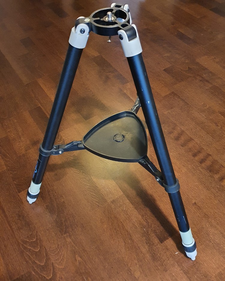 Vand trepiedul din imagine. El este de la SkyWatcher Star Adventurer dar poate fi utilizat pentru orice alt tip de montura similara sau direct pentru cap-nuca pe care se monteaza direct un aparat foto DSLR. Este usor si foarte stabil. Eu am montat pe un astfel de trepied (am mai multe) o montura DIY din aluminiu, grea si care merge fara nici o problema.
