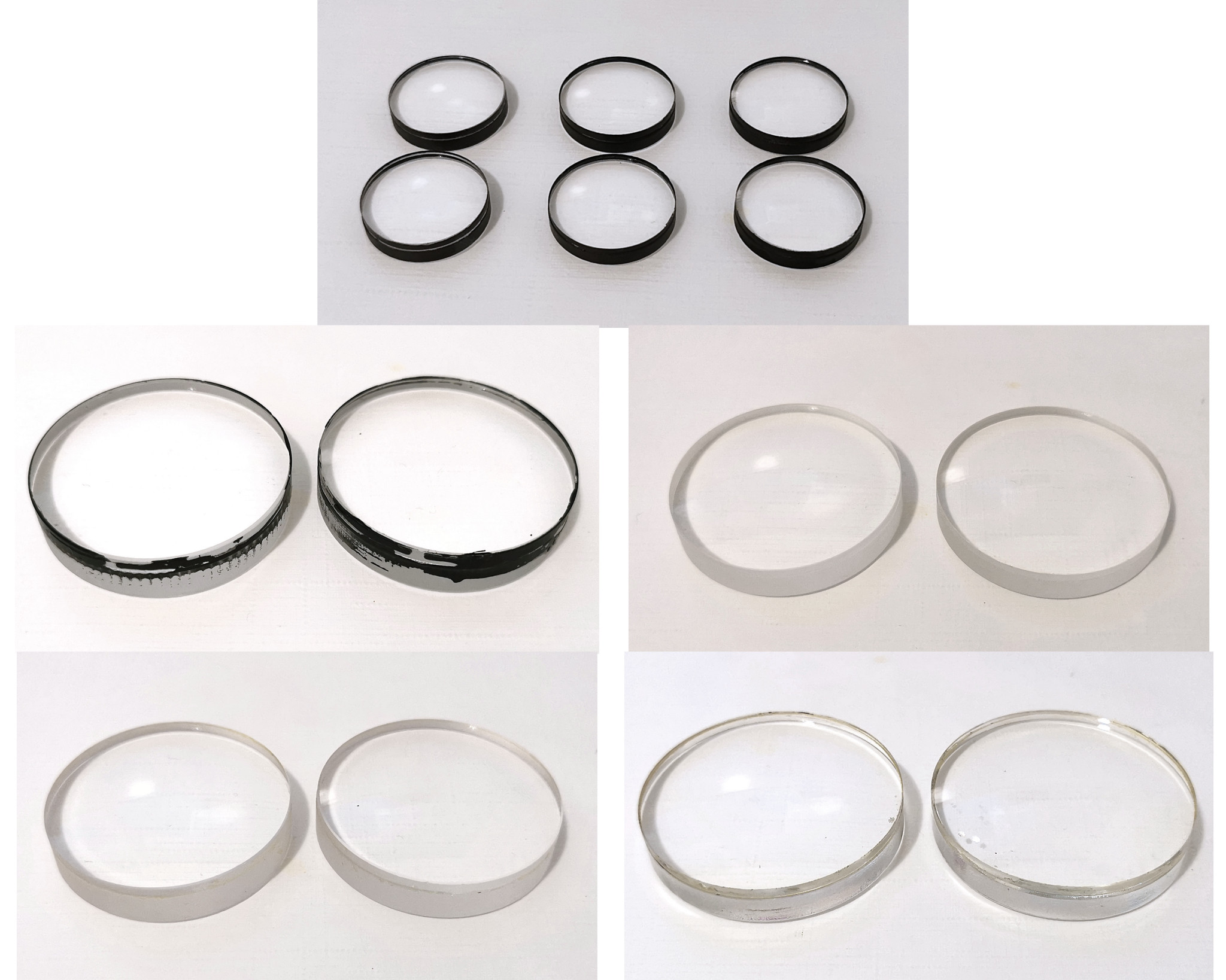 - dublete acromate f/4 provenite de la binocluri de 50mm (8 buc) si 20mm (6 buc); se pot folosi pt a construi oculare RDP, sau findere.