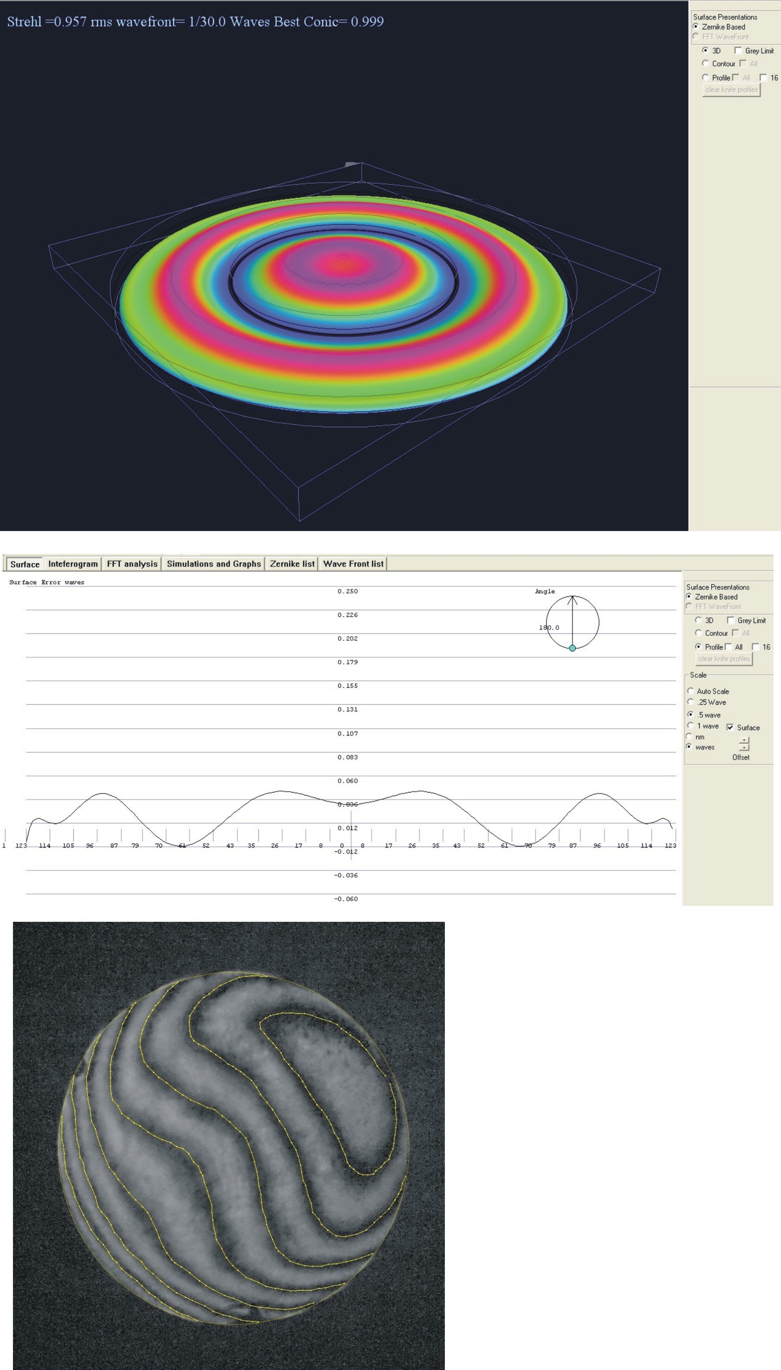 Da Zircon , conicitatea este citita de program. apare in imaginea colorata sus " best conic -0,99 . am folosit cu succes acest program si la testarea secundarelor de cass convexe hiperbolice unde aveam best conic 2,6 . astept si oglinda ta.