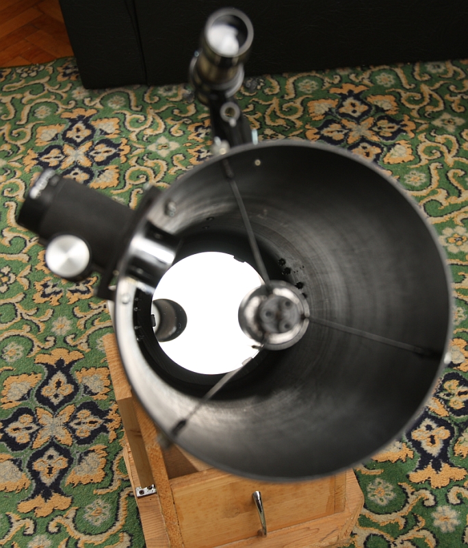 Vand telescop newton pe montura dobson de 150mm F/5. Oglinzile sunt aduse din SUA in urma cu cativa ani (nu mai tin minte exact), nu mai stiu provenienta lor exacta. Telescopul se misca in azimut pe teflon si se vinde exact cum se vedem in poze.