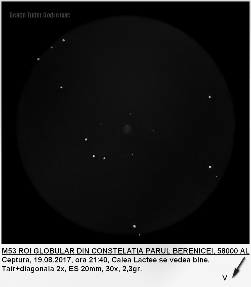 Tudor. Desenul cu roiul globular M53 este foarte frumos si aproape de realitate,exact cum se observa si in ocular. Felicitari!