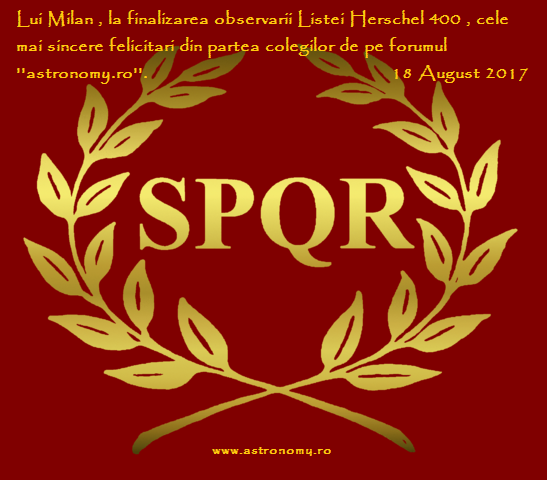 Felicitari maxime lui Milan pentru incheierea observarii Listei Herschel 400...SPQR pentru tine !!!