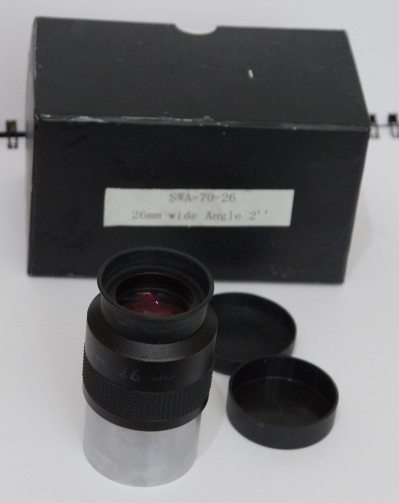 Vand ocular de 26mm pe 70 grade, pe 2''. Ocularul este in stare optica foarte buna, dar scrisul de pe el s-a cam sters, datorita faptului ca a fost unul din ocularele preferate, si in consecinta folosit destul de intens. Are capace si cutie originala.