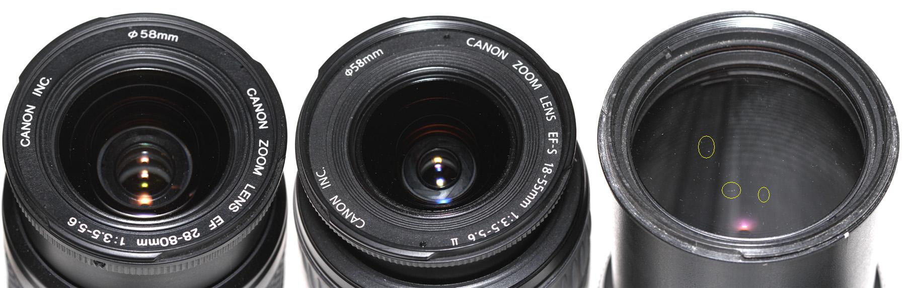 Lentila frontala prezinta trei zgarieturi (puncte) foarte fine, evident neimportante pentru imagini, insa prezente (se tine cont la pret...), ele fiind marcate si pe imagini.