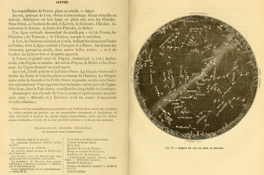 Dau mai jos cateva extrase din ''Les Etoiles et les Curiosites du Ciel'' de Camille Flammarion.