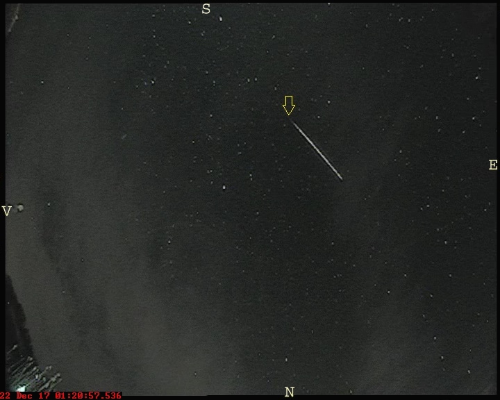 Meteorii de noaptea trecuta. Primul e o Ursida, al doilea sporadic, eu nu il pot asocia cu nici un curent meteoric. Am mercat cu sageata punctele de intrare.