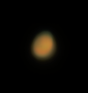 Marte - 09-10-2022. Diametru aparent: 12.75" Faza: 0.89 Elongatie: 113.25 grade . Point Grey Chameleon CLMN 13S2M + reflector 114/900mm ,@1837mm cu barlow. 4000 cadre (ROI) la 30 fps. |
