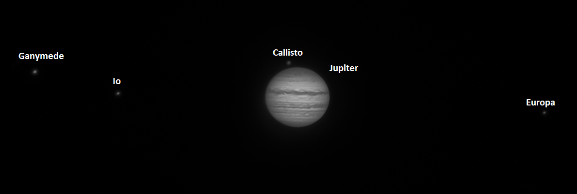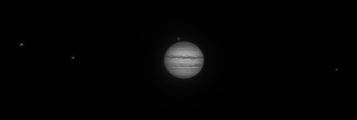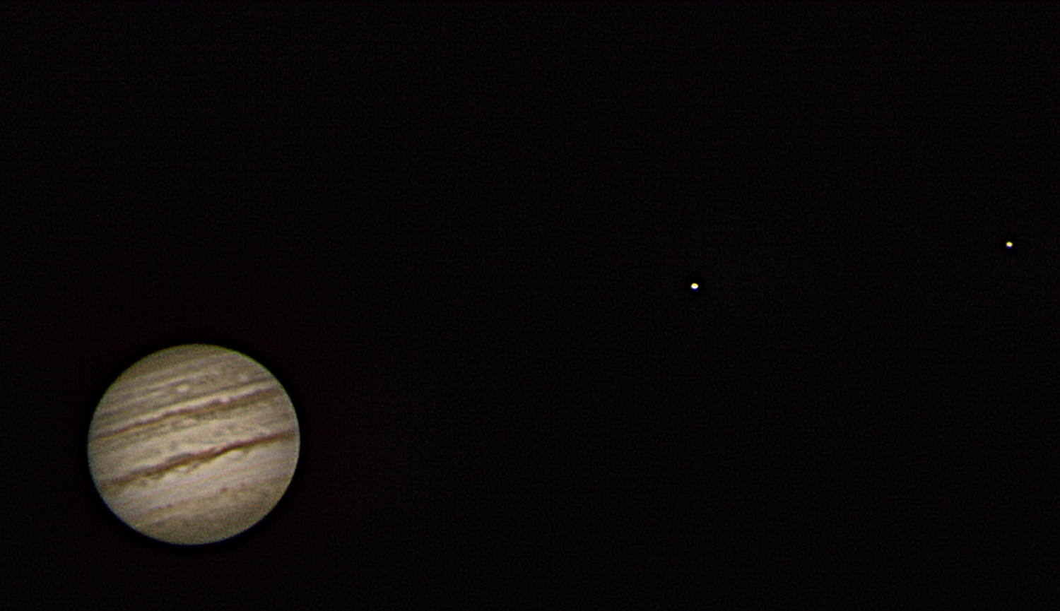 - La Jupiter se vedeau doua benzi si o configuratie foarte interesanta a satelitilor galileeni.