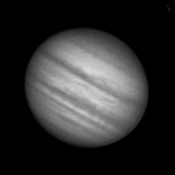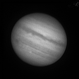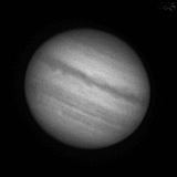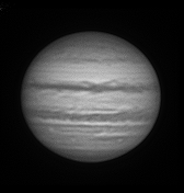 Si un Jupiter "proaspat", din seara asta, capturat mai mult printre nori, dar mai clar decat aseara si cu GRS marginea sud-estica a discului, tocmai ce rasarea. Dar norii au acoperit aproape tot cerul pana la urma si nu am mai reusit sa capturez si GRS mai spre meridianul discului planetei.