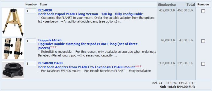 Titlul subiectului: Vand Berlebach Planet Long cu adaptor Takahashi EM400