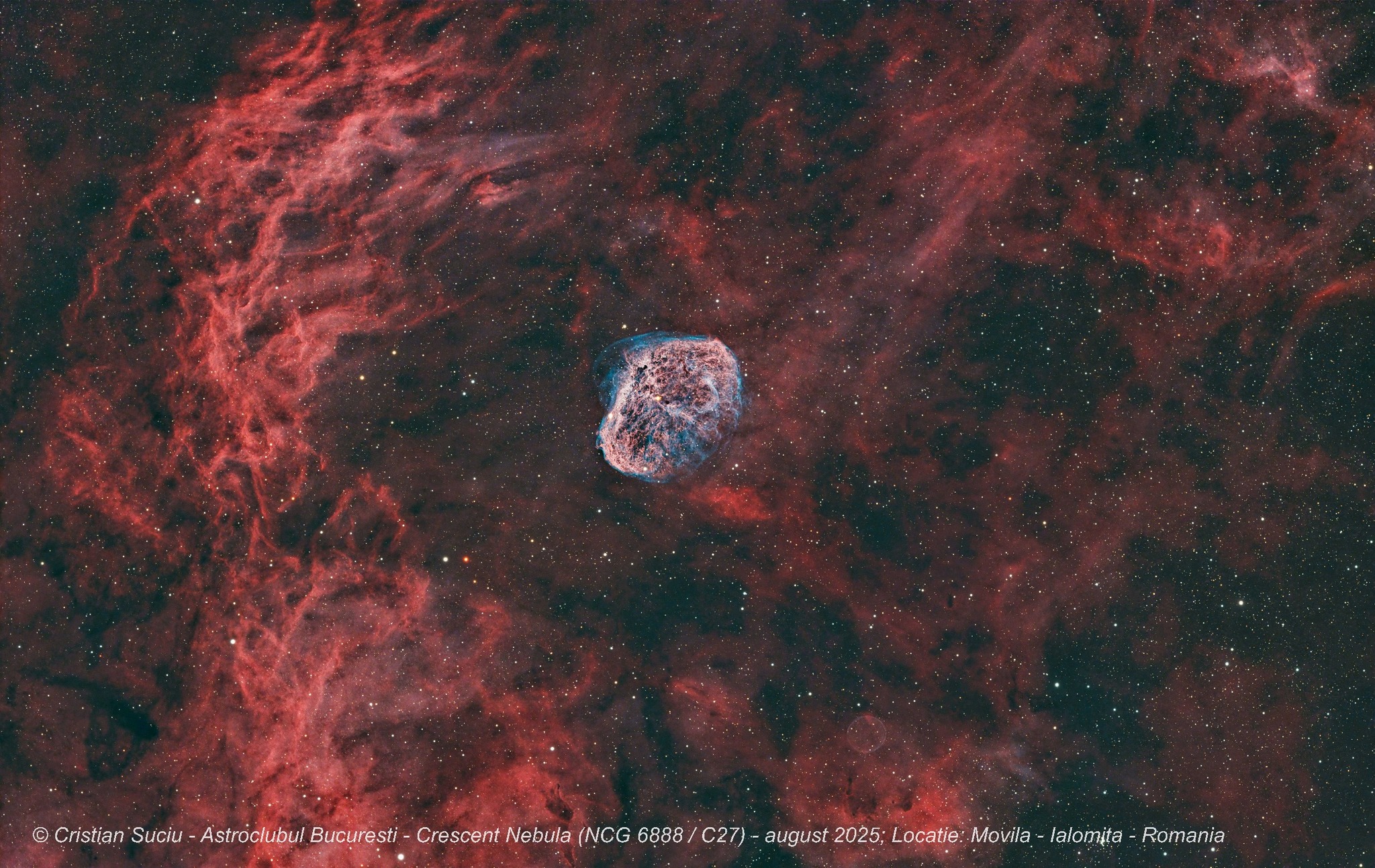Colegul nostru Cristian Suciu a fotografiat Nebuloasa Crescent timp de peste 30 de ore in mai multe nopti din luna august 2025 si iata imaginea obtinuta.