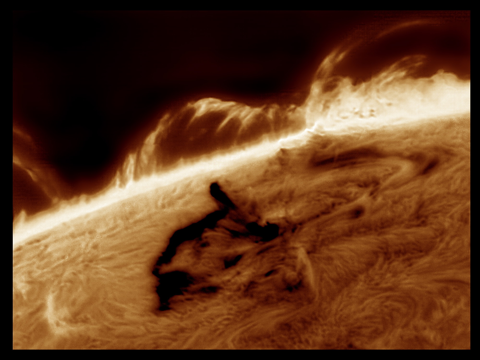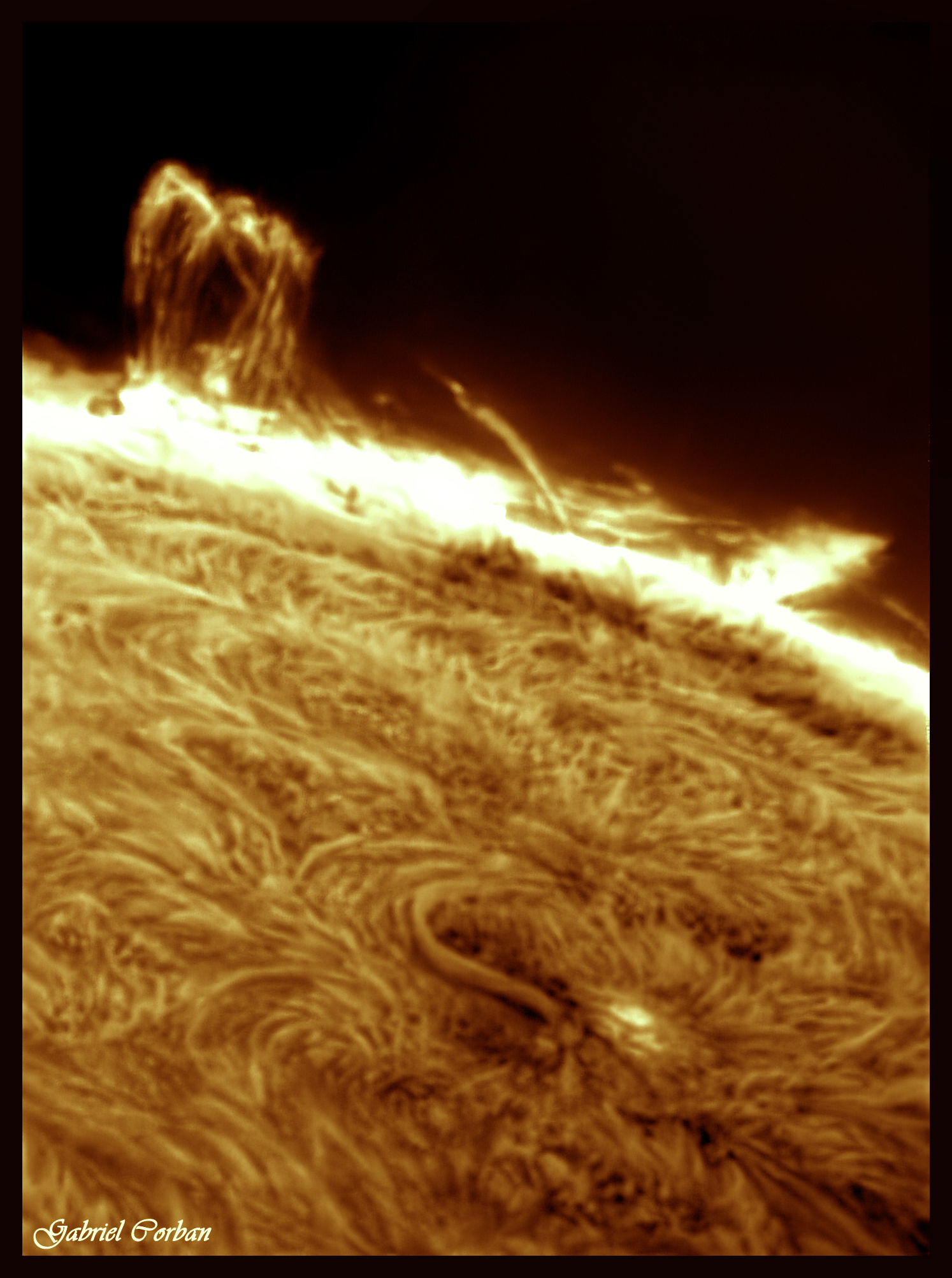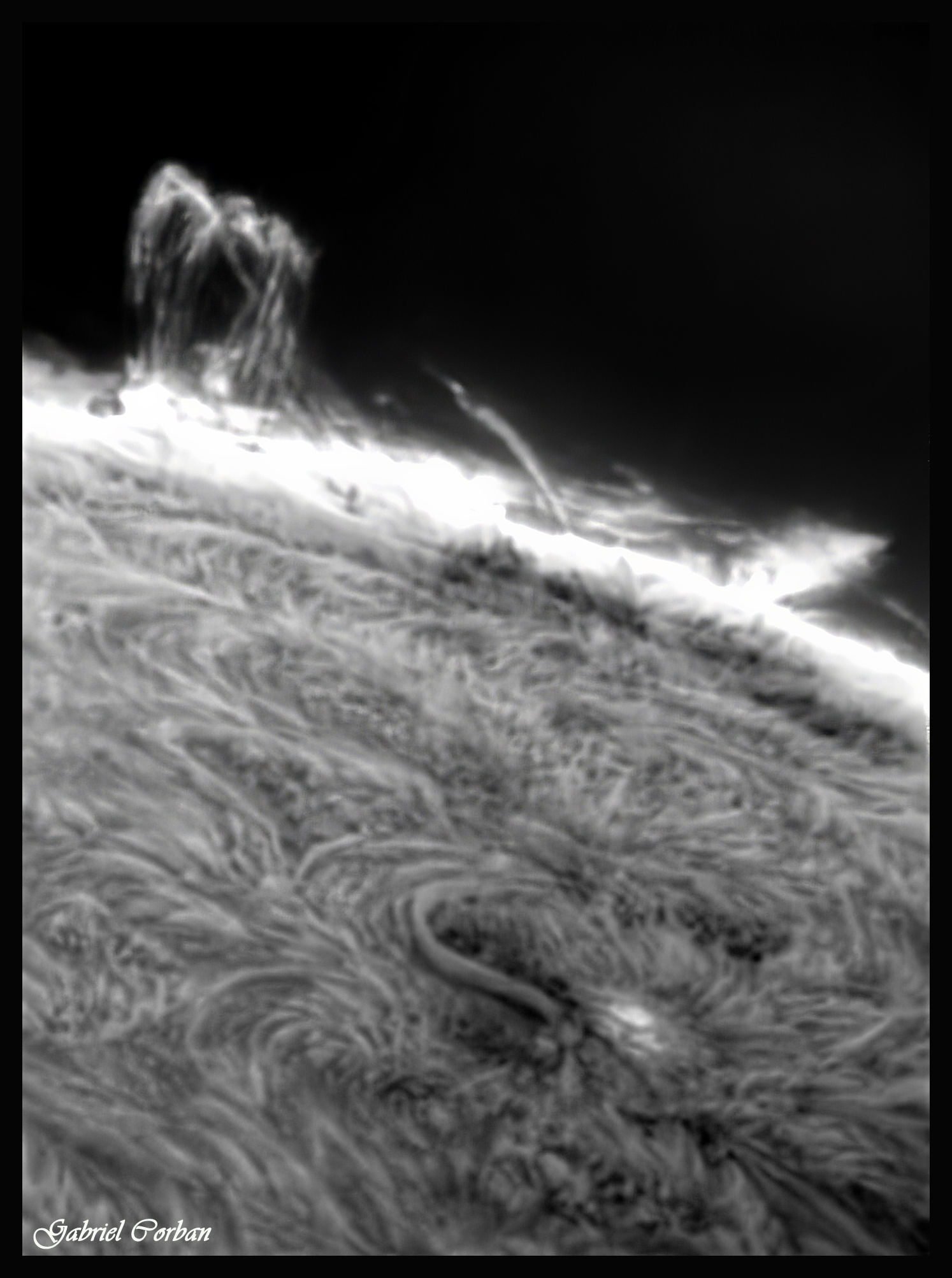 Am prelucrat in graba (pana mâine când voi avea mai mult timp), dintr-un singur cadru, imaginea cu protuberanta de azi aflata pe limbul estic.