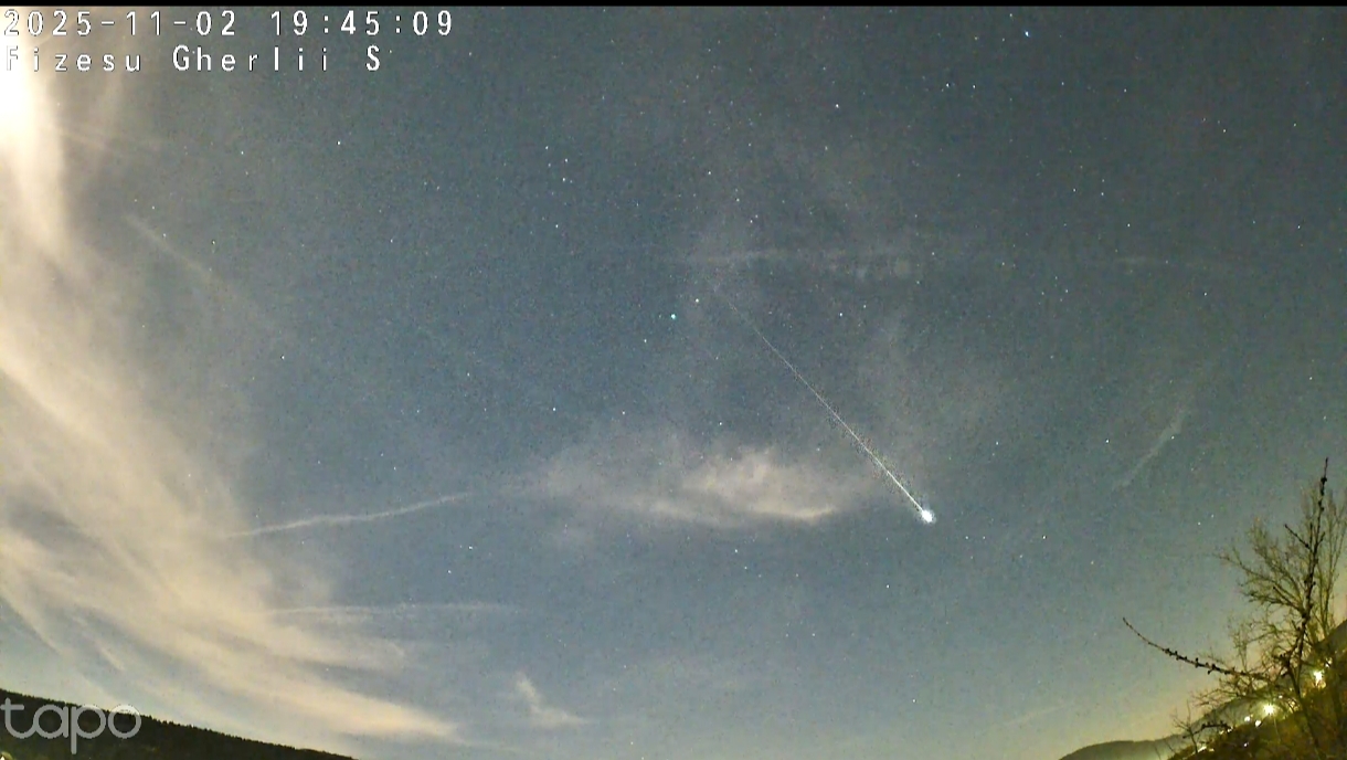 | Mersi Iosif ! L-am prins cu doua camere Tapo , parca apare si ceva culoare . S-a stins in fata lui Polaris , ceva mai jos . Are tenta spre W ARADULUI . Dar e totusi mic ca piesa , poate avea la zbor intunecat max 1kg . Revin cu cele doua secvente . Vad ca aceste camere au pret cam marit fata de cum a fost la momentul cind eu le-am achizitionat +60lei . Cred ca mai achizitionez 2 buc .