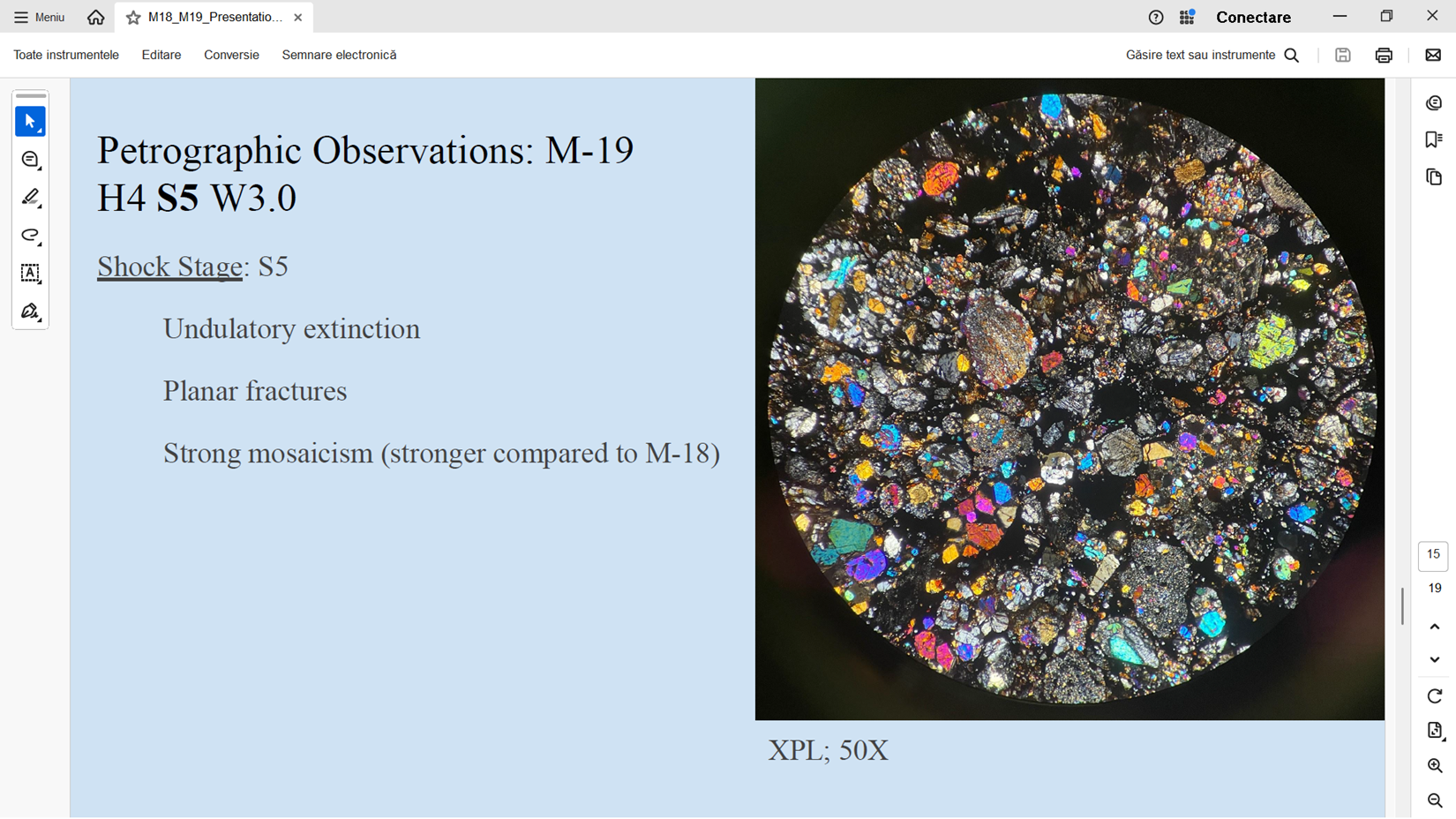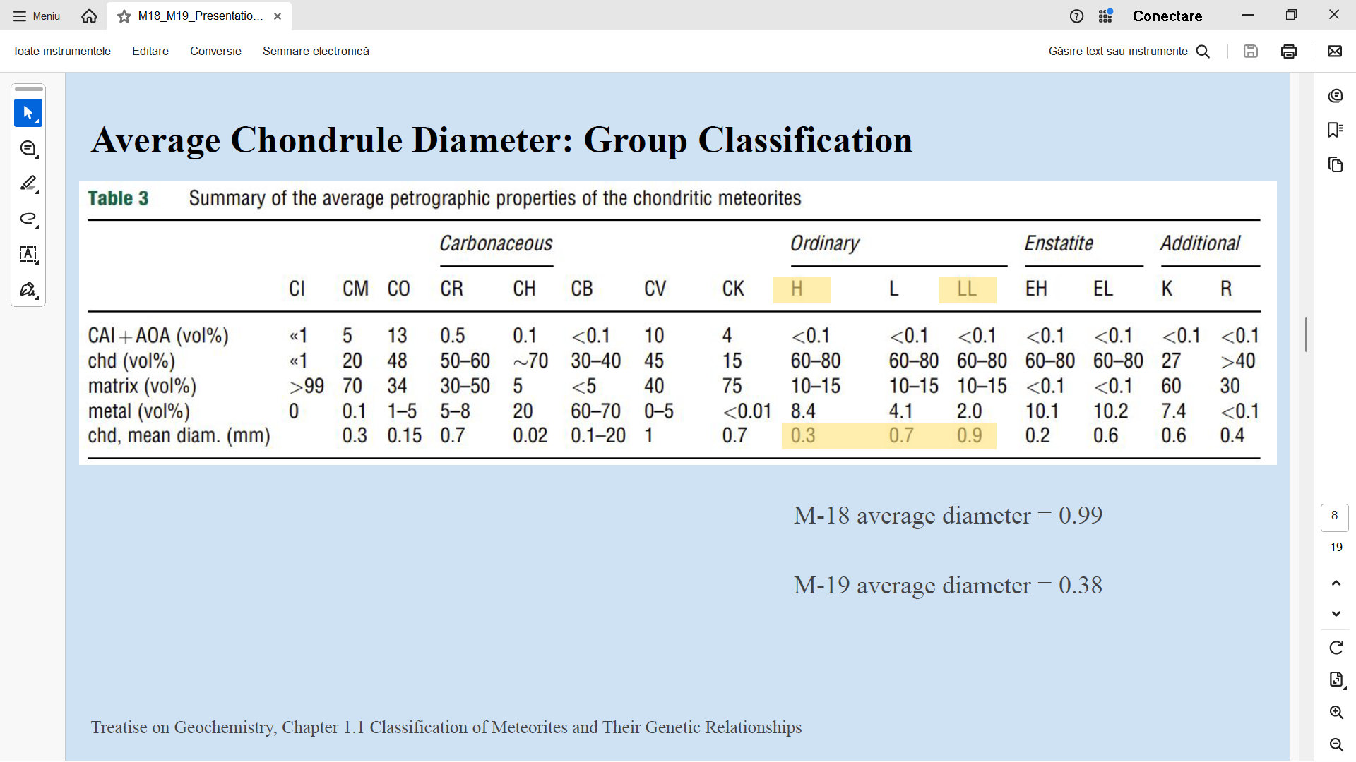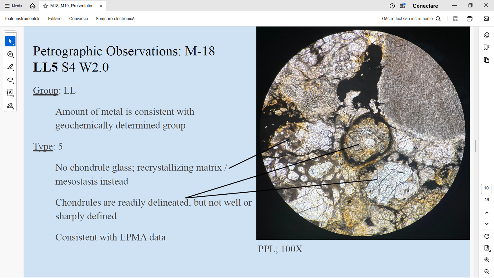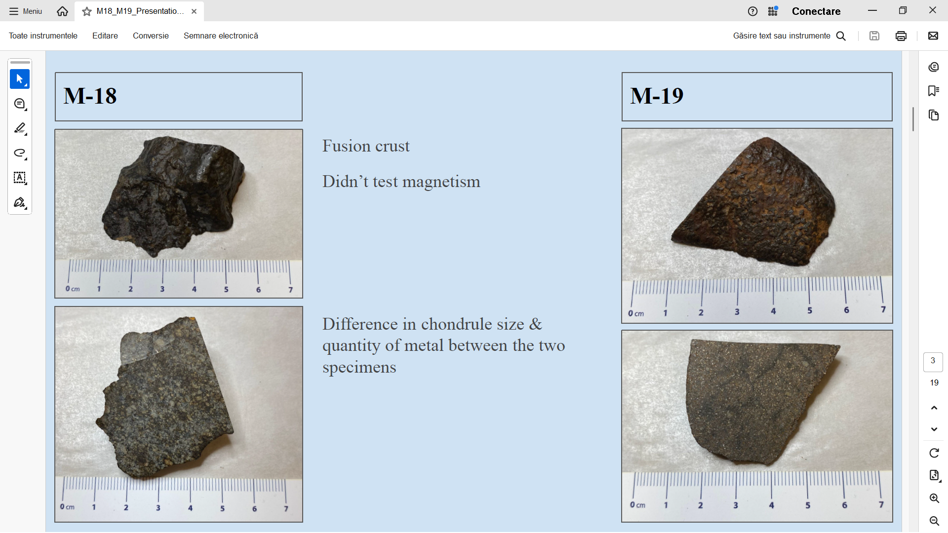| Analiza meteoritilor M-18 si M19 - a se citi H in loc de LL... o mica eroare in prezentarea studentei... |
