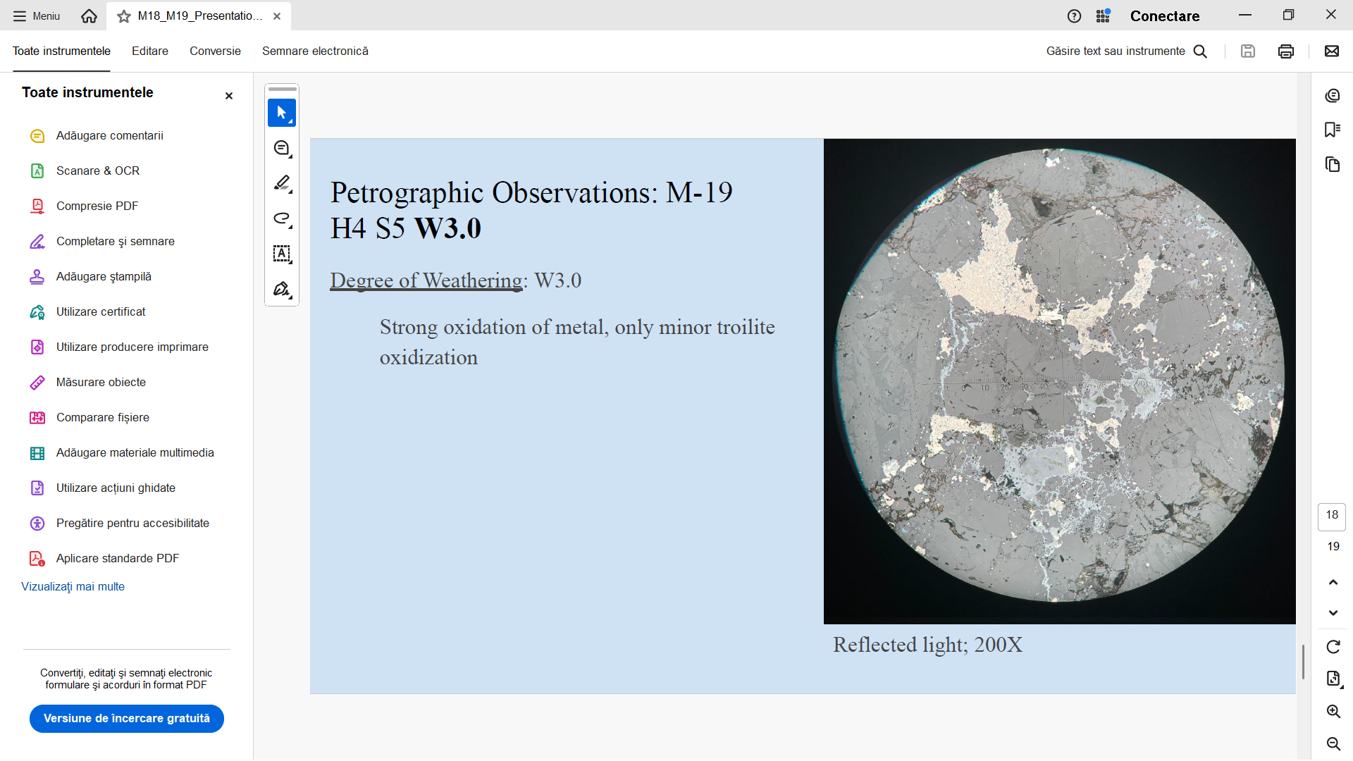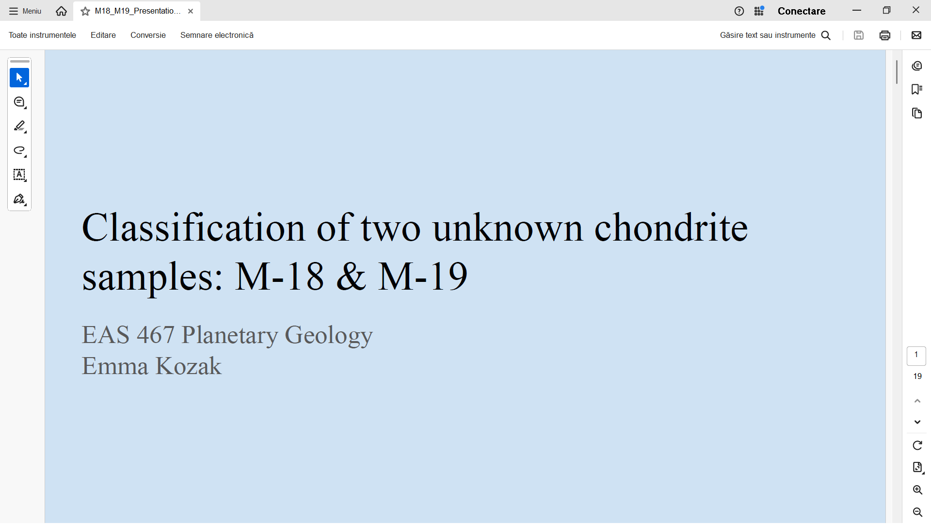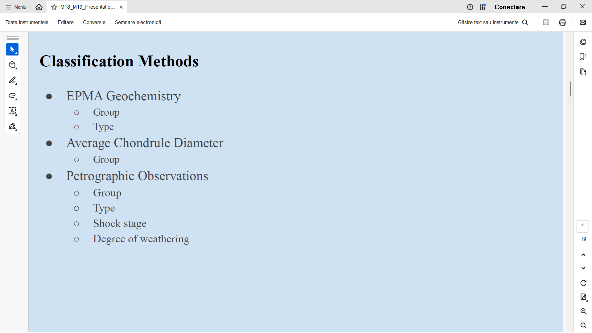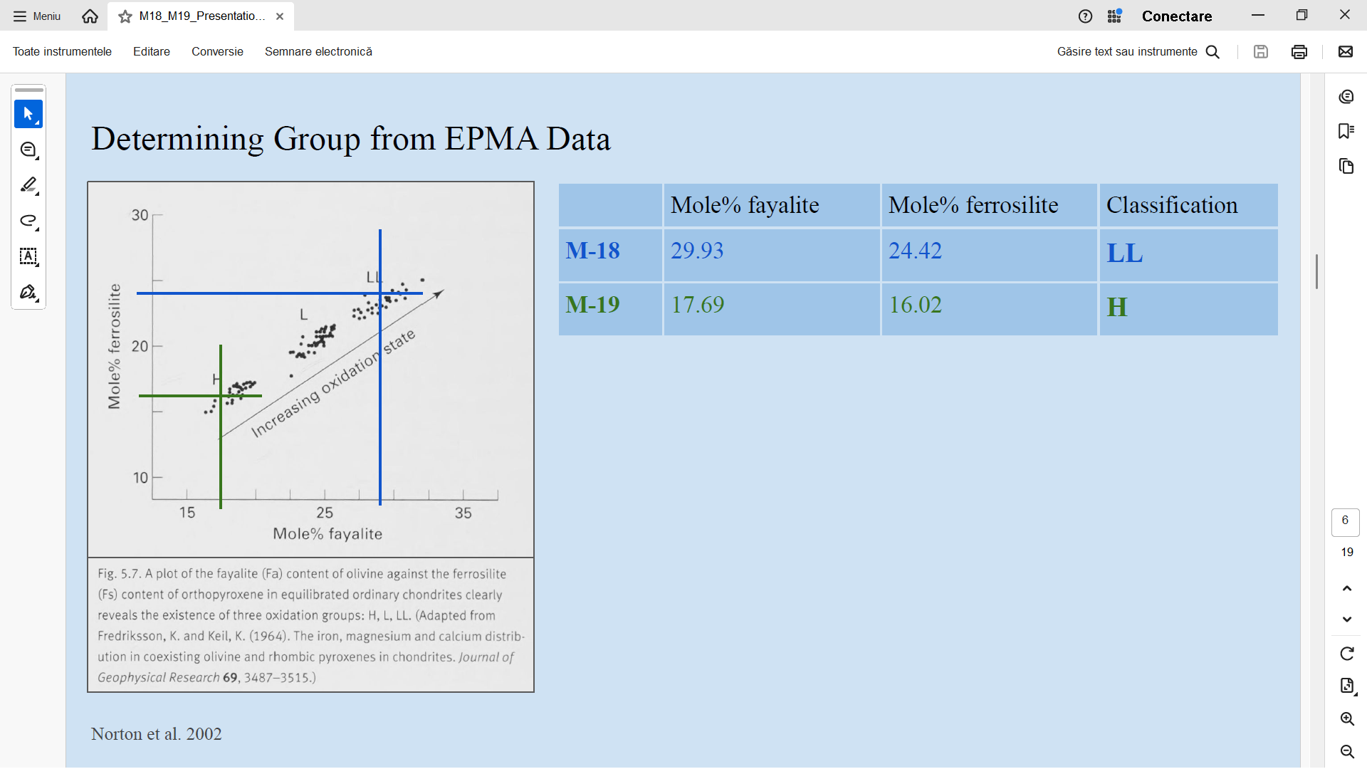 | Analiza meteoritilor M-18 si M19 - a se citi H in loc de LL... o mica eroare in prezentarea studentei... |