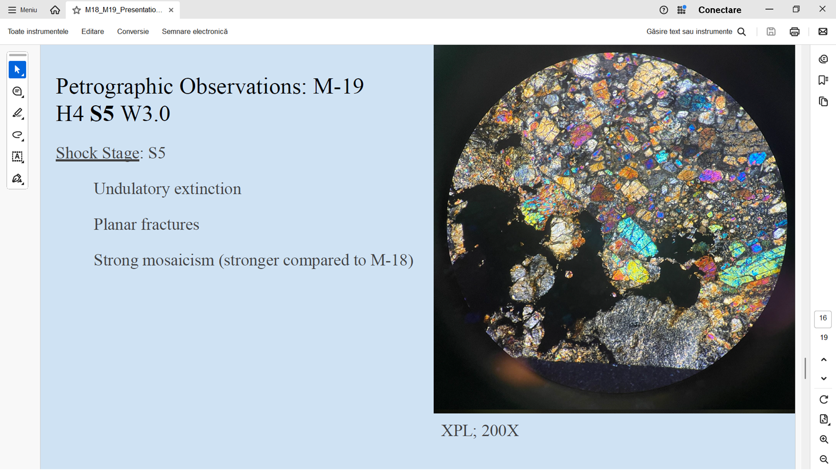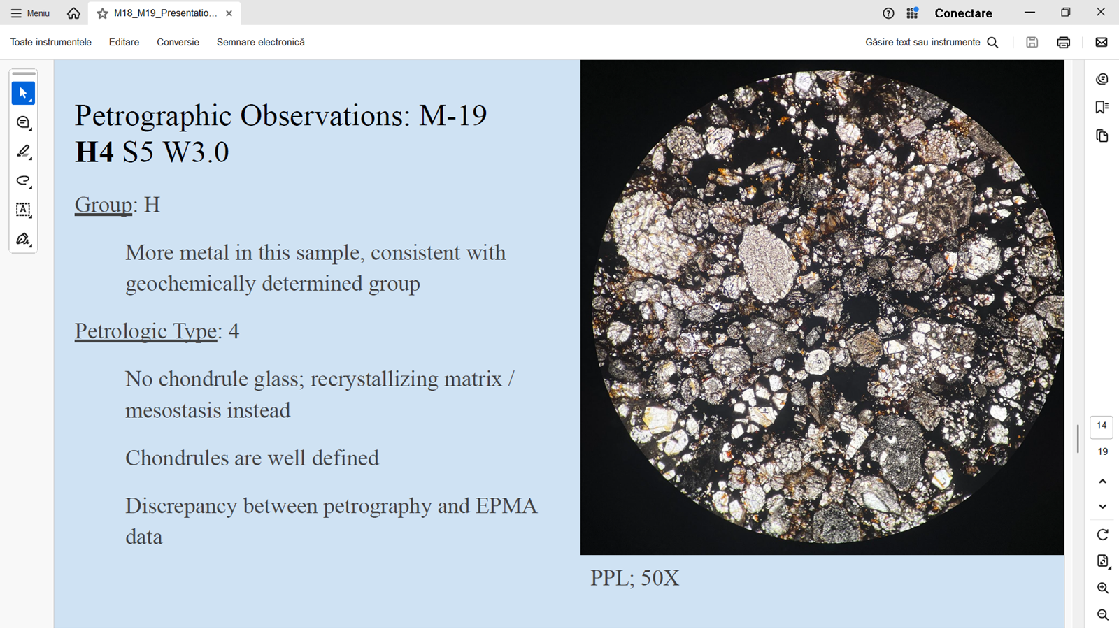 M-19 nu este condrita carbonacee (cum a zis amicul meu din Africa) ci condrita ordinara tip H4.