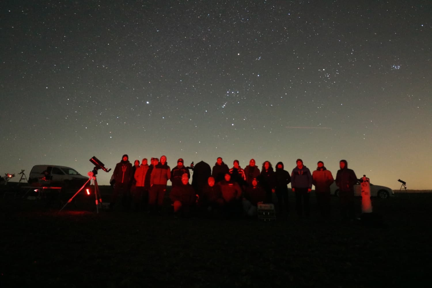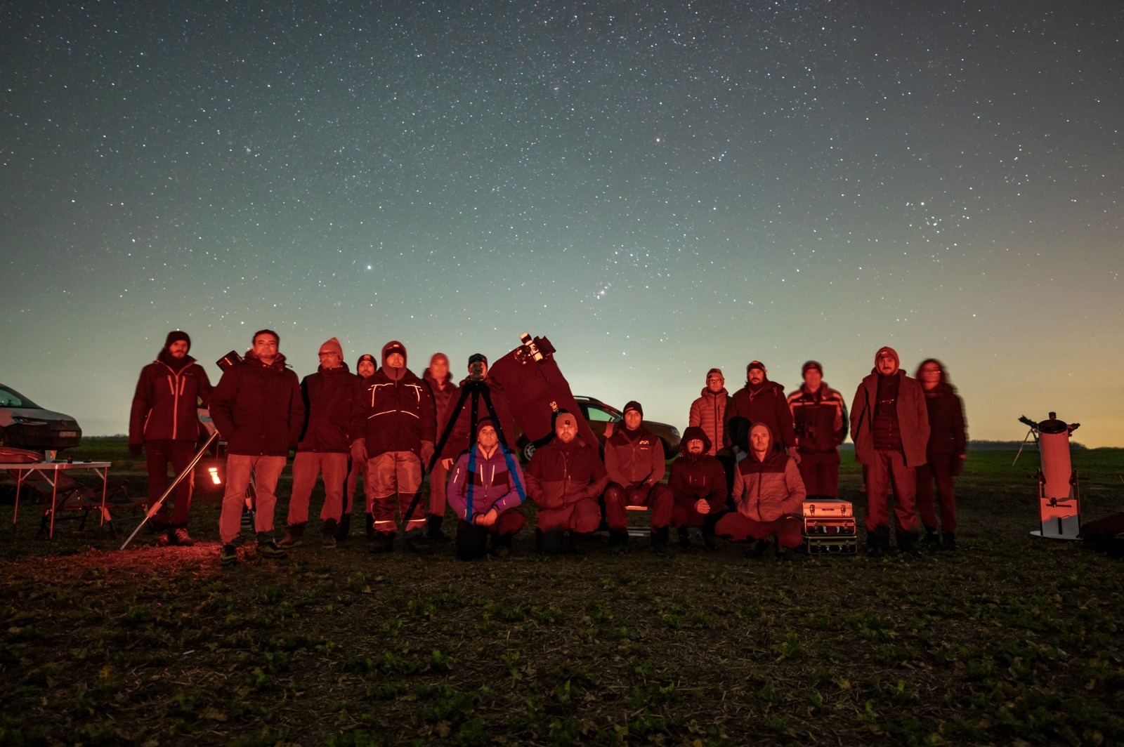 | Poza de grup a celor de la Cluj, cel mai mare telescop de acolo fiind de 400mm |
