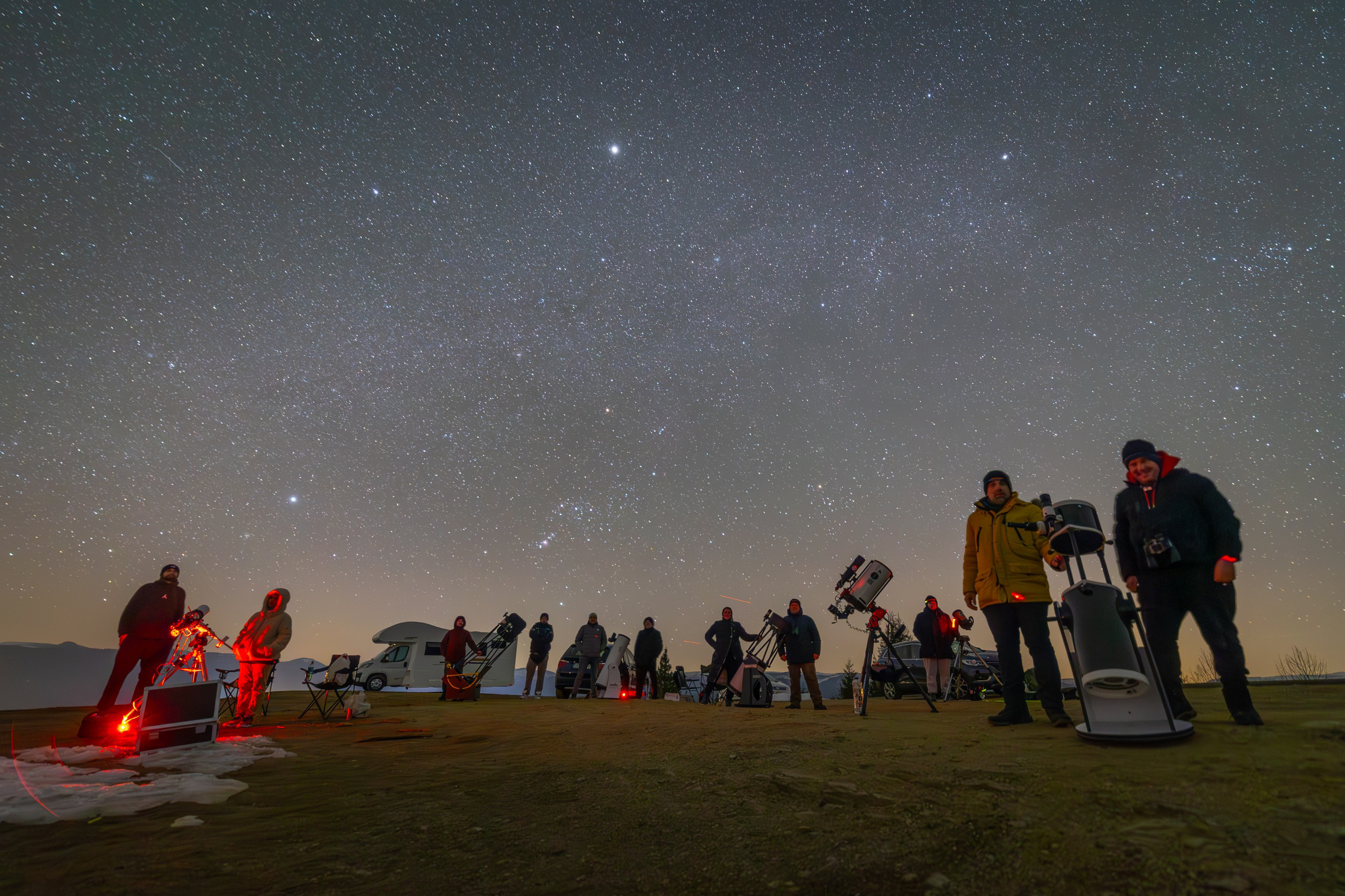 Weekendul acesta, astROmaniacii din toata tara au luat in serios aceasta initiativa, luand cu asalt locatiile cu poluare luminoasa redusa din jurul localitatilor de domiciliu. Astfel, zeci de astronomi amatori din cadrul astROmania au petrecut o noapte la stele, atat vineri (pentru astronomii bucuresteni si vasluieni) cat si sambata (in cazul astROmaniacilor din Cluj, Timisoara si Bistrita).