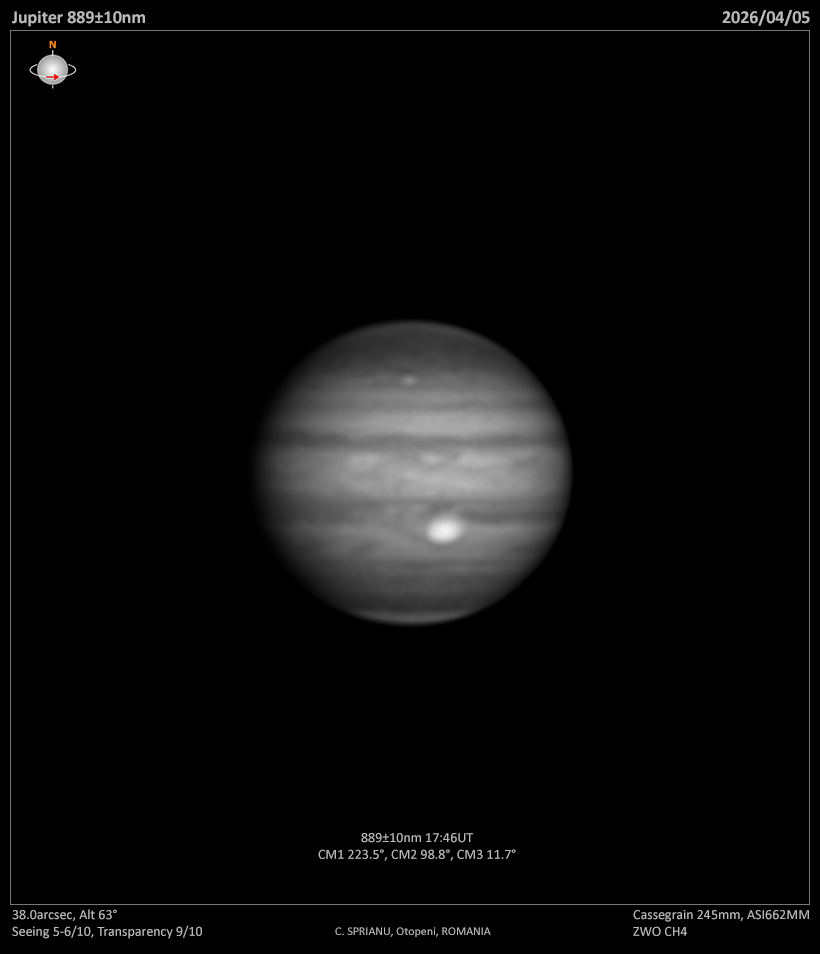 Jupiter in 5 aprilie, pe seeing variabil amestecat cu cateva scurte momente foarte bune.