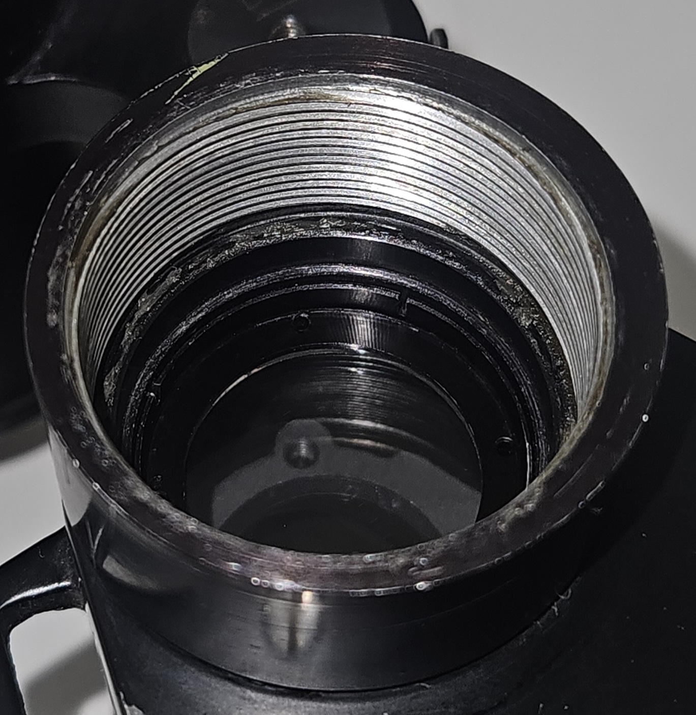 o sa incerc și așa cu surub si lipic, dupa sărbători cand gasesc lipici. Pana atunci atașez imagini cu praful din interiorul binoclului, era mai mult dar am reușit sa înlătur o mare parte din el ștergând ocularil pe interior.