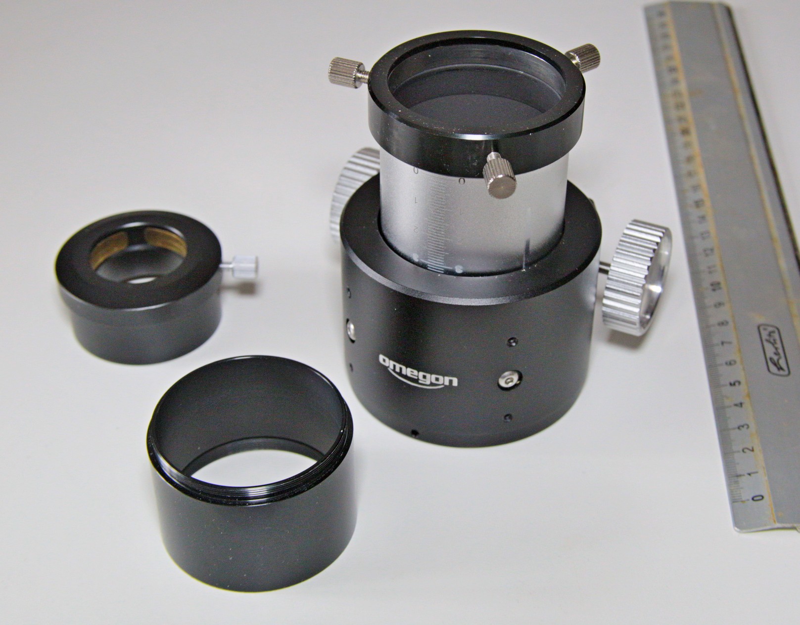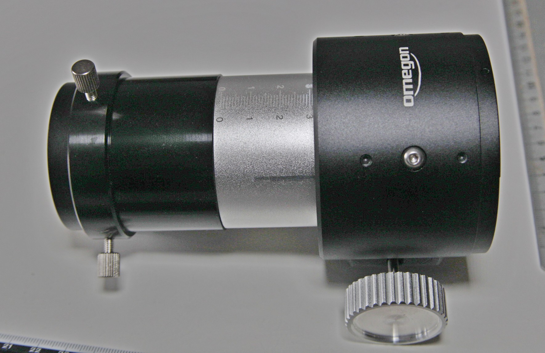 Focuser tip Crayford, pe 2'', de la Omegon. Este nou. Are cursa nativa 33 mm, si un tub prefungitor care se infileteaza, lung de 35 mm. Are reductie de la 2'' la 1,25, si ambele iesiri, de 1,25 si de 2'' au inele de compresie. Diametru spre tubul telescopului este de 77,9 mm. Cumparat anul trecut pentru un proiect abandonat, nu a fost utilizat niciodata. Pret 250 lei.