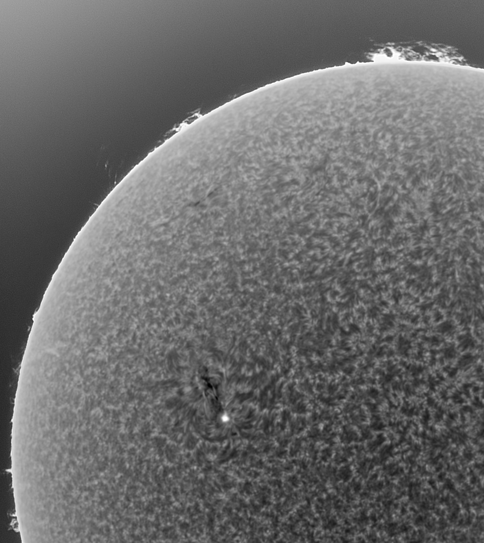 Mai prezint doua imagini close-up mai detaliate, cu regiunea AR 4419, prelucrate dintr-o scanare facuta in mod Bin1 ,tot astazi, cu SHG 80mm si camera ASI178MM.
