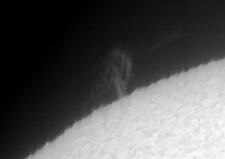 Pe 15 aprilie, o formatiune cromosferica, o zona activa in formare, capturata in conditii atmosferice slabe.