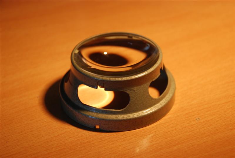 Piesa consta in ceea ce eu cred ca e o primsa mare care reflecta imaginea la 90 de grade, si o lentila cu convergenta foarte mare (are si curbura imensa, dupa parerea mea). Toate astea prinse de un suport de metal solid.