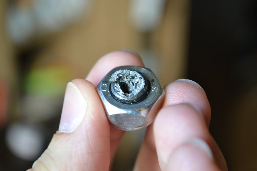Piulita s-a miscat foarte usor, ca si cum era desfiletat. Ceea ce am constatat la bucata rupta de surub m-a lasat perplex. In primul rand nu era un surub individual ci e vorba de o piesa care se termina intr-o tija cu cap infiletat (o pesa turnata). Materialul folosit e ceva gen fonta, fara o densitate mare, dar nici aceasta nu ar fi problema, ci faptul ca piesa respectiva cand a fost turnata nu i-a fost scos tot aerul din materialul turnat in matrita. Drept pt. care acel cap filetat, si probabil intreaga iesa sau chiar intreaga montura, arata exact ca o bucata de BCA ca un burete plin de bule de aer. DAca este asa inseamna ca descrierea acestei monturi ca fiind una solida este departe de a fi adevarat. Din nefericire garantia este, cred de doar un an asa ca nu pot returna piesa