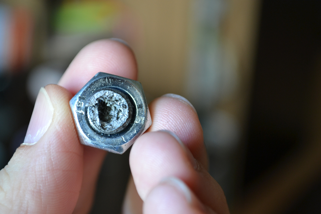 Ieri dimineata pt. ca avea sa merg la tara (in apropiere de Bucuresti, SLobozia Moara), am zis sa-mi reglez putin montura AZ3 din posesie ca avea un joc intre montura si trepied. Bun, am zis eu si am pus mana pe o cheie sa strang piulita ce le uneste ca ma gandeam ca s-a slabit si nu mai tine montura lipita de trepied. Fara sa depun un efort cat de mic, si fiica mea de 4 ani ar fi strans mai tare decat am facut-o eu, am strans piulita de doua ori, scurt. Nu am facut un tur de 360 cu cheia ci doar doua miscari de , sa zicem, 25-30 grade. Moment in care la a doua miscare s-a frant surubul, o parte ramanand in piulita.